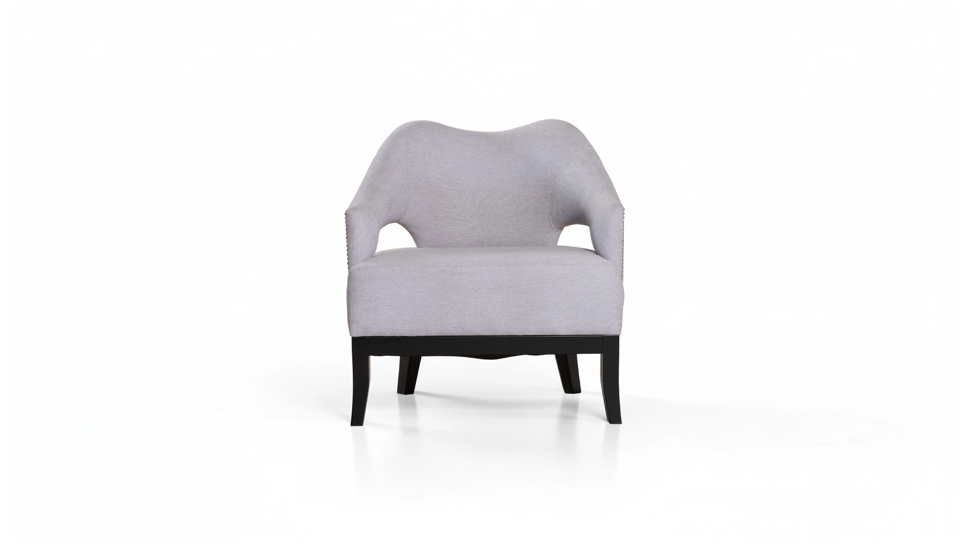 Sillón de sala Kiss. Tapizado de pana shot mastic, caracterizado por su forma curvilínea, con detalles en tachas. Estructura fabricada con madera de Guindo y terminada con acabado piluretánico negro semimate. Producto de edición limitada. Consultar stock disponible. Precio final con descuento, incluye IVA y género. Para customizaciones que requieran un nuevo proceso de fabricación, se realizará una cotización especial