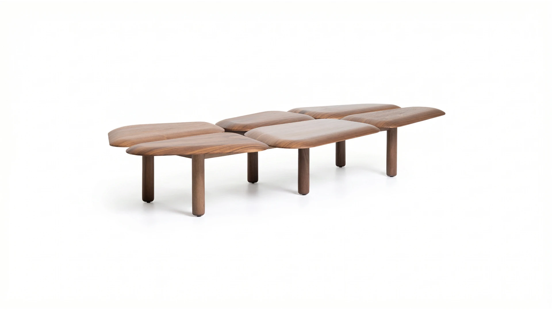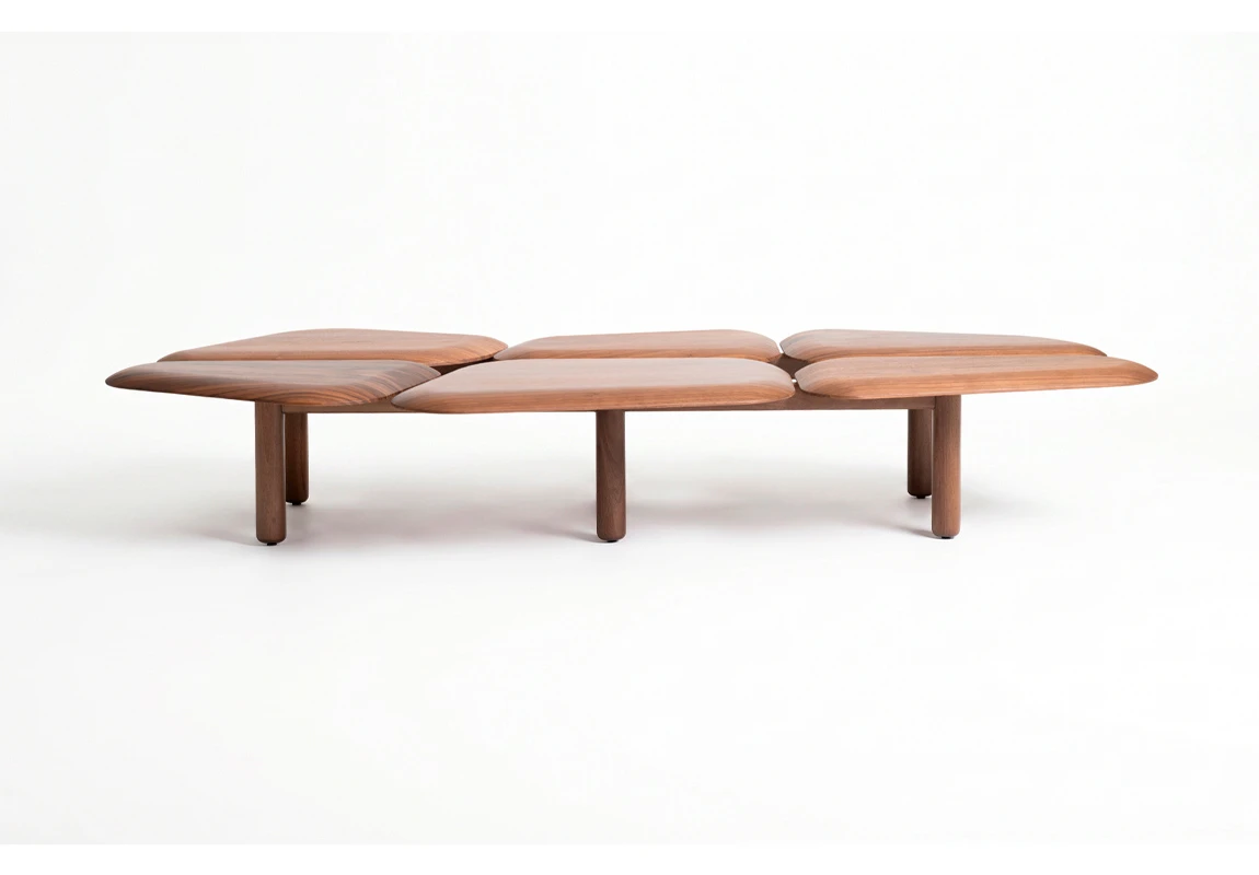 Mesa de centro Rinata. Tapas con terminación en madera que resaltan la veta y aportan calidez, combinadas con pies en madera maciza que aseguran estabilidad y resistencia. Su diseño modular permite múltiples configuraciones, adaptándose a distintos espacios y usos *Este producto no es customizable*