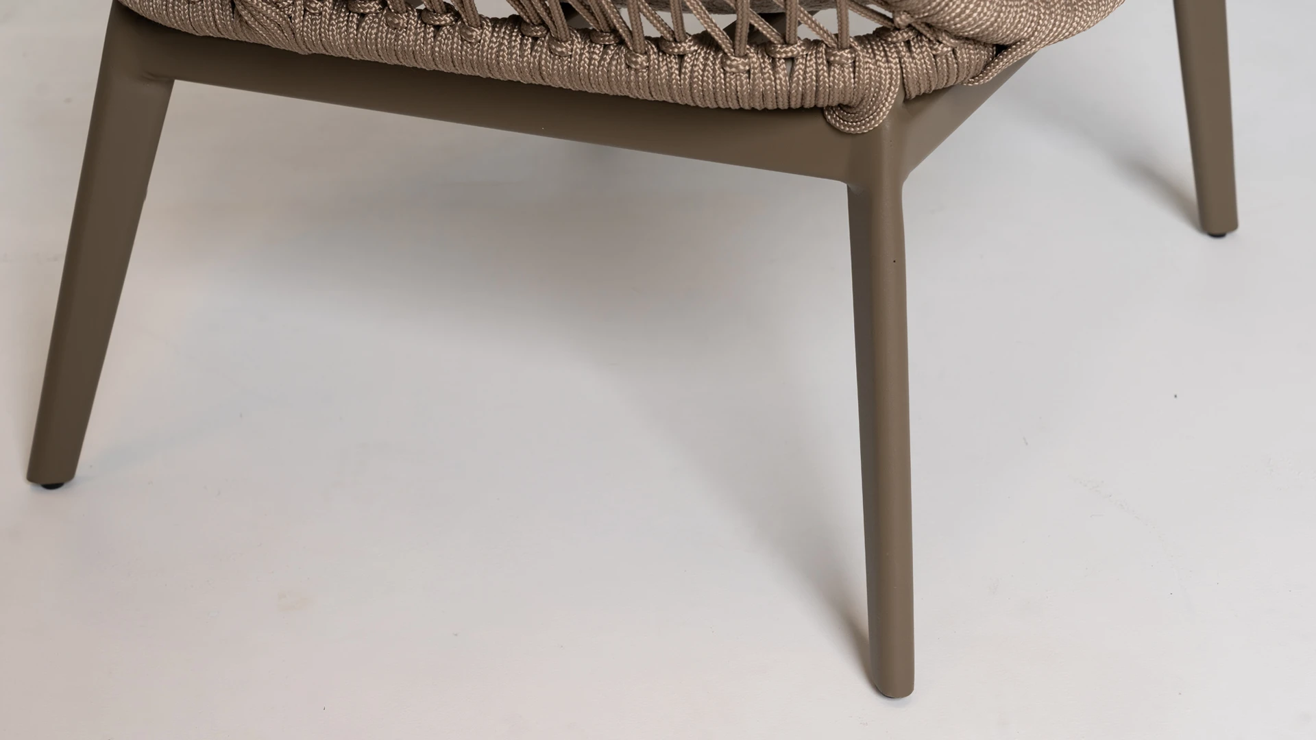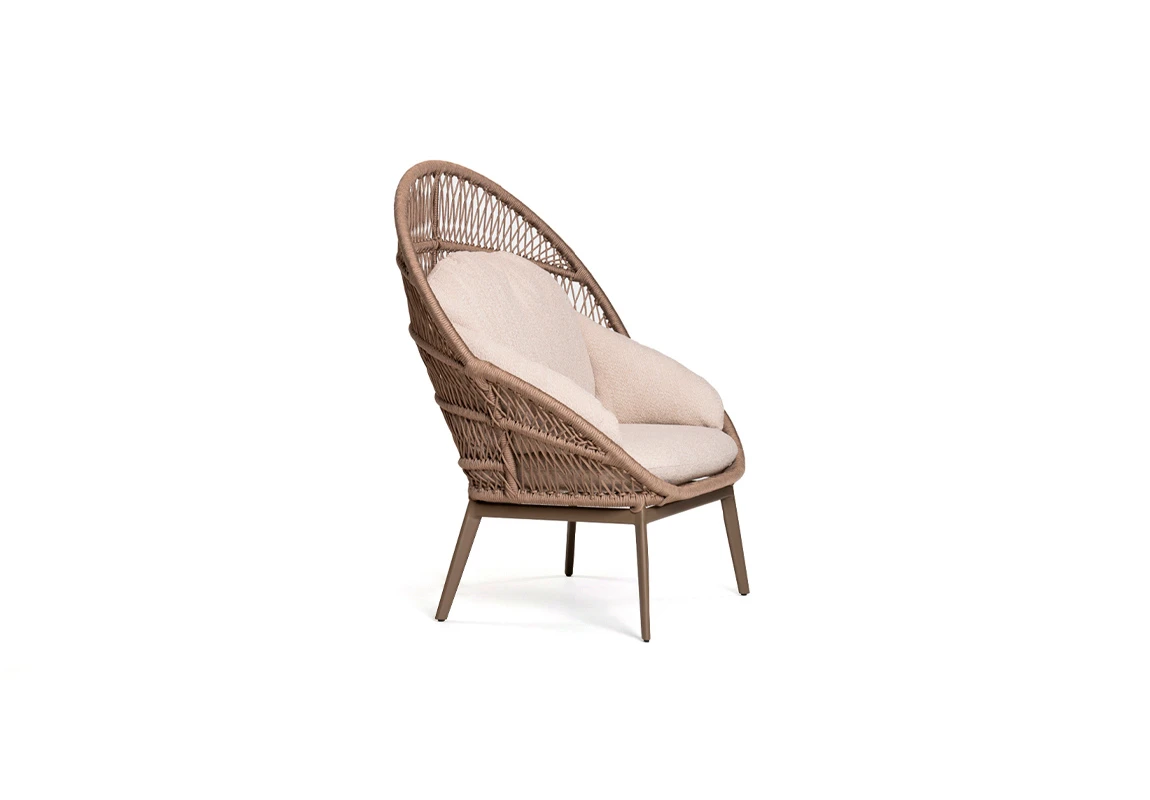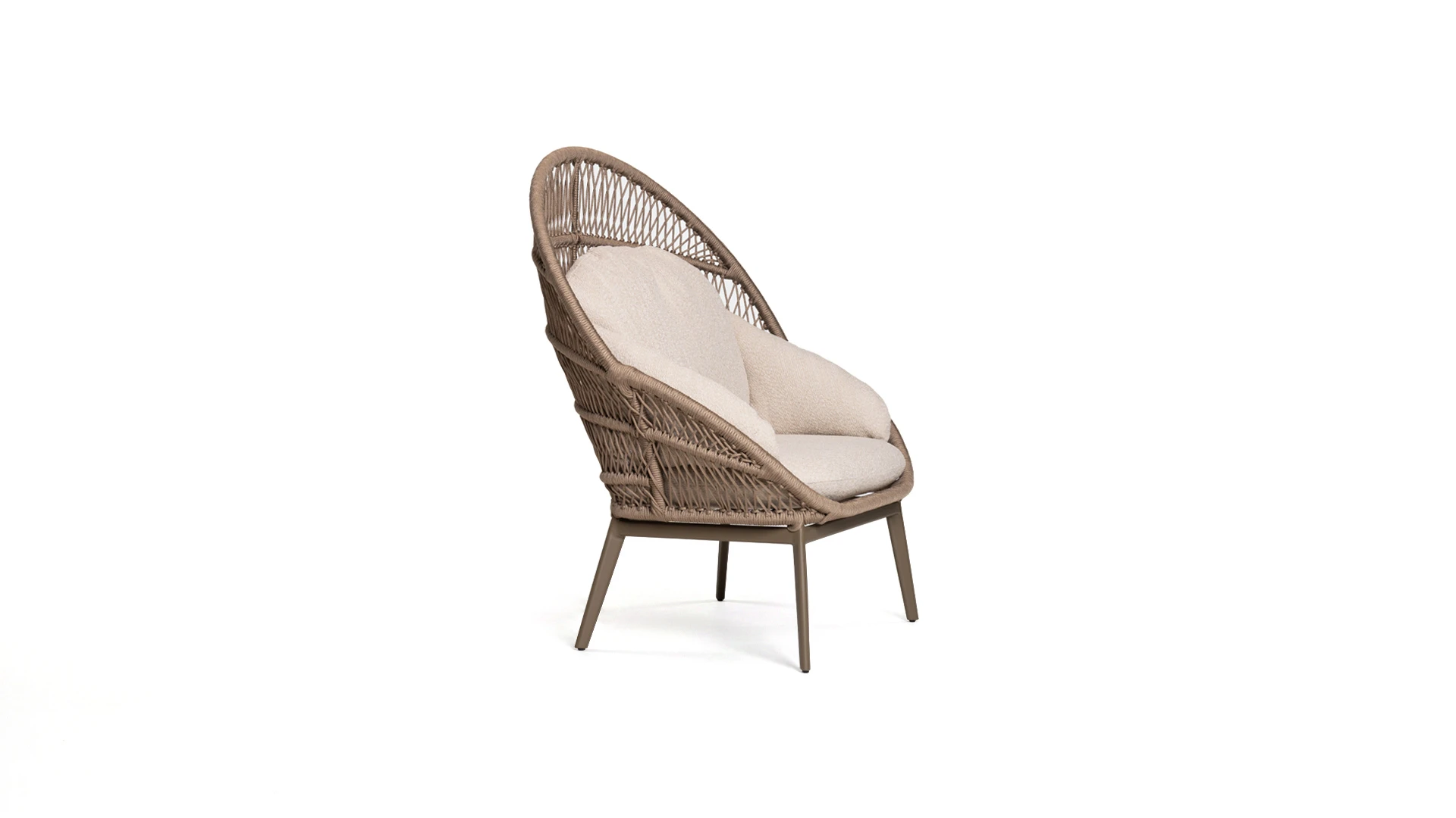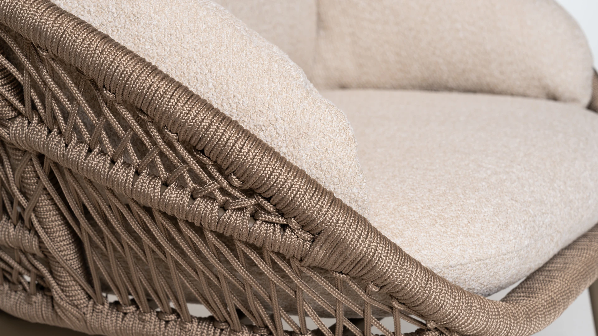 Poltrona Maldivas. Cuenta con una estructura de aluminio con acabado de pintura electroestática, revestido con cuerda náutica artesanal con protección UV. Tapizado con telas náuticas. Se recomienda no exponerlo a la intemperie de manera directa cuando no esté en uso. De lo contrario se deberá utilizar una funda protectora. Aviso: Para prolongar su vida útil, recomendamos retirar los almohadones y guardarlos cuando no estén en uso. *este producto no es customizable*