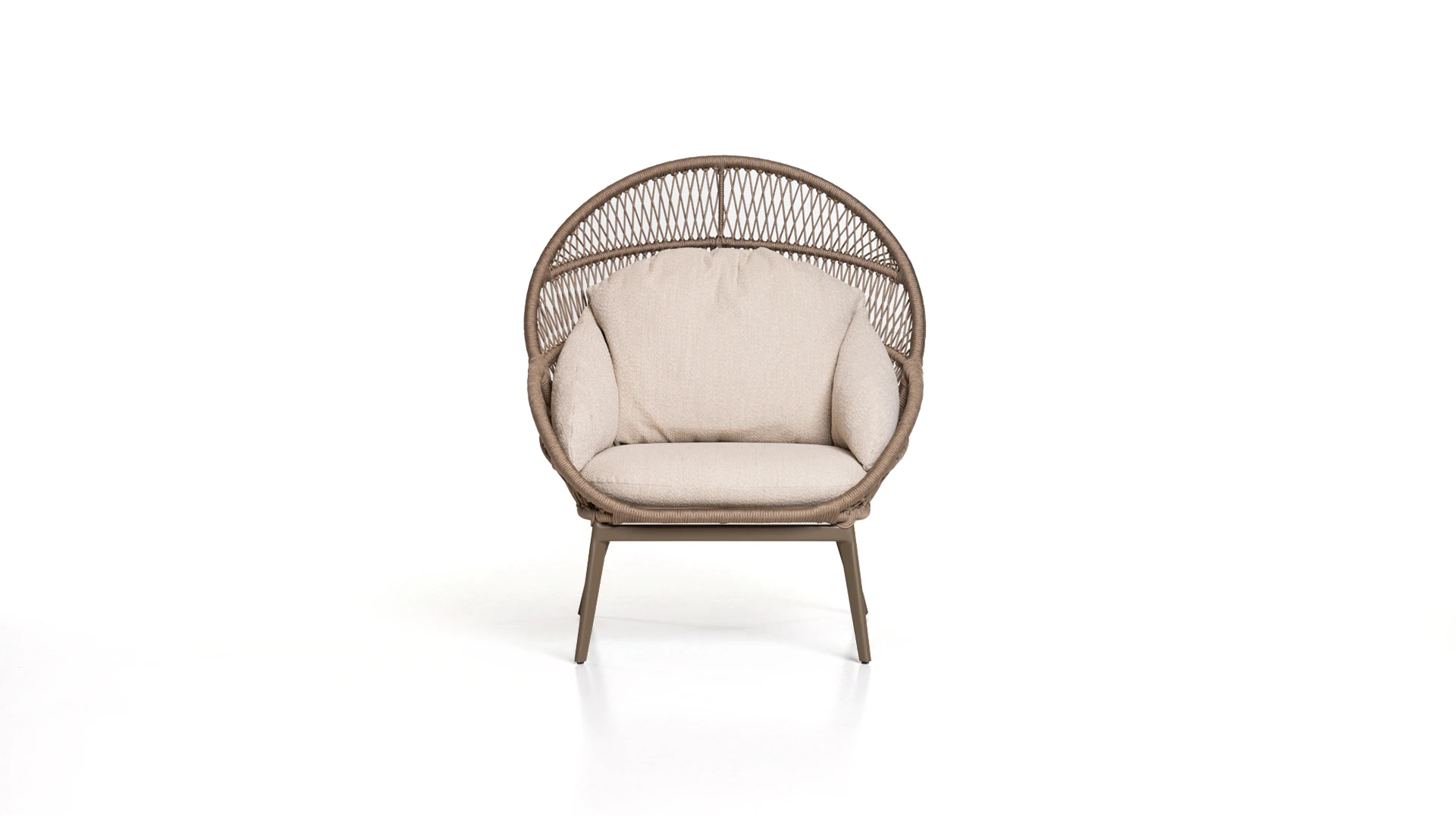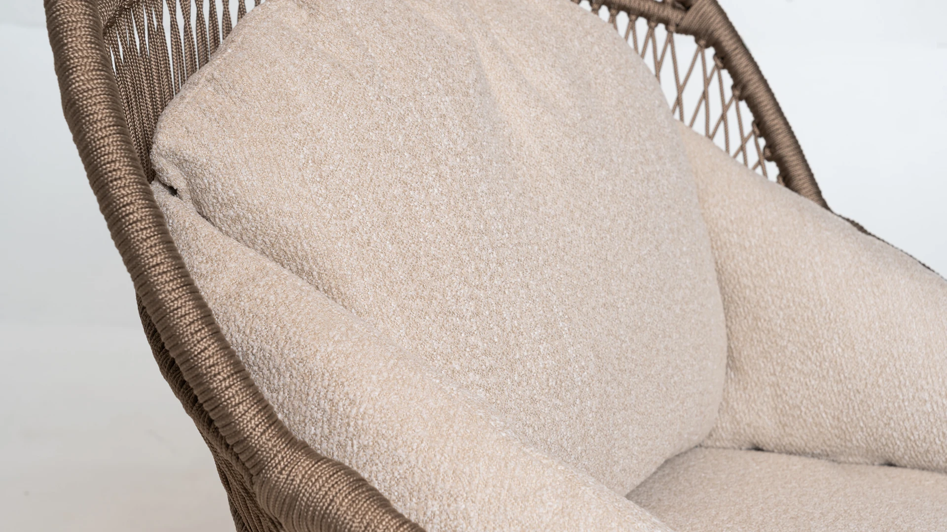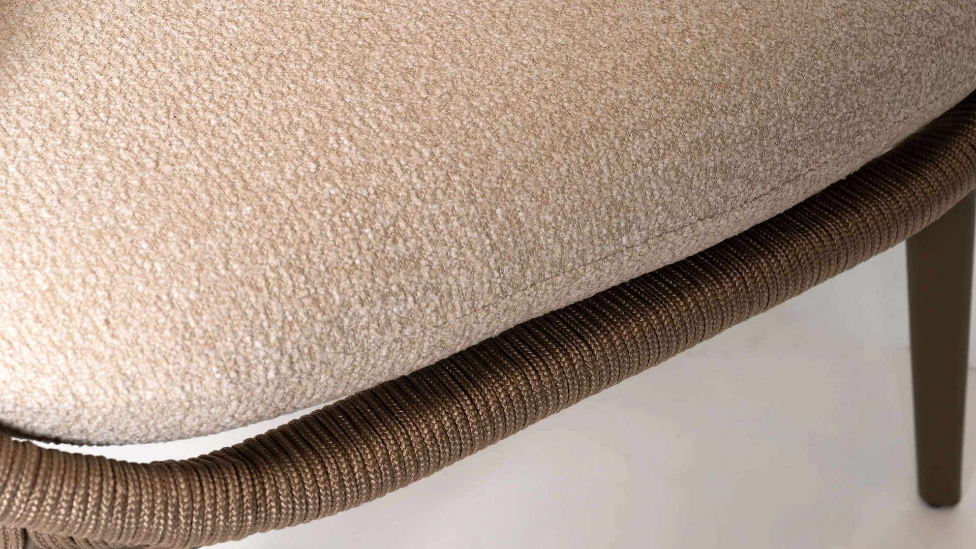 Poltrona Maldivas. Cuenta con una estructura de aluminio con acabado de pintura electroestática, revestido con cuerda náutica artesanal con protección UV. Tapizado con telas náuticas. Se recomienda no exponerlo a la intemperie de manera directa cuando no esté en uso. De lo contrario se deberá utilizar una funda protectora. Aviso: Para prolongar su vida útil, recomendamos retirar los almohadones y guardarlos cuando no estén en uso. *este producto no es customizable*