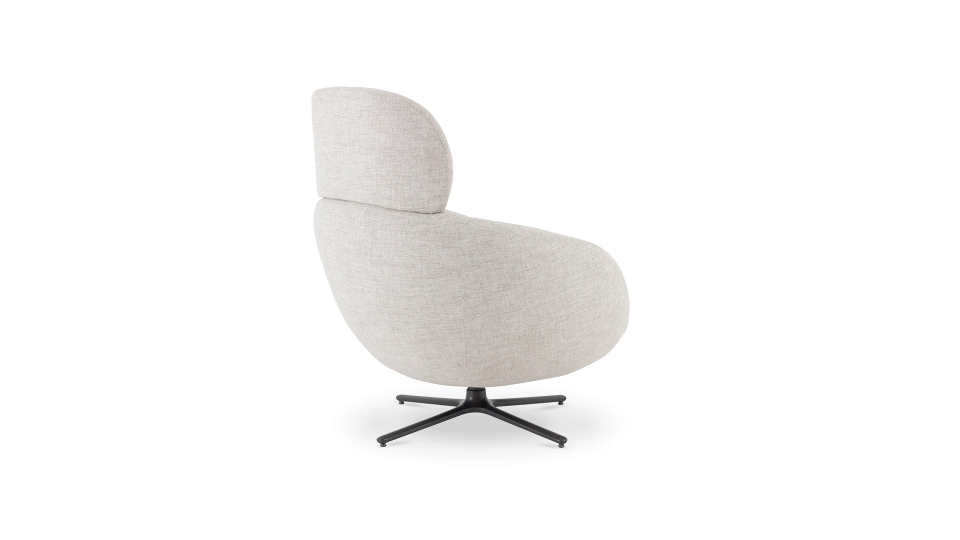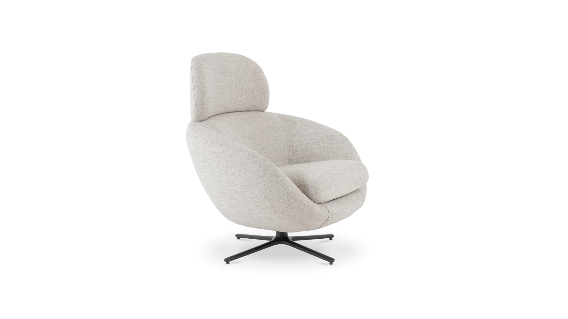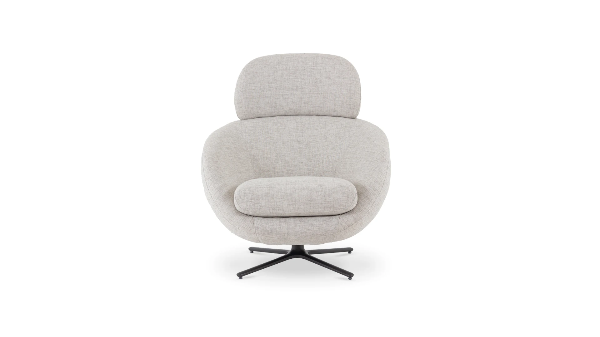 Sillón giratorio Nexo. Estructura realizada en aluminio con terminación en color negro. Cinchas, resortes y poliester de distintas densidades garantizan la comodidad y durabilidad y tapizado en tela rústica color light grey *Este producto no es customizable*