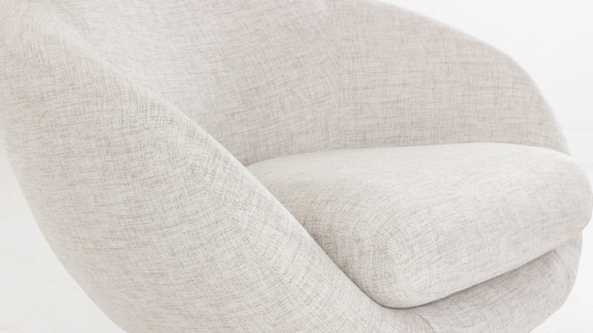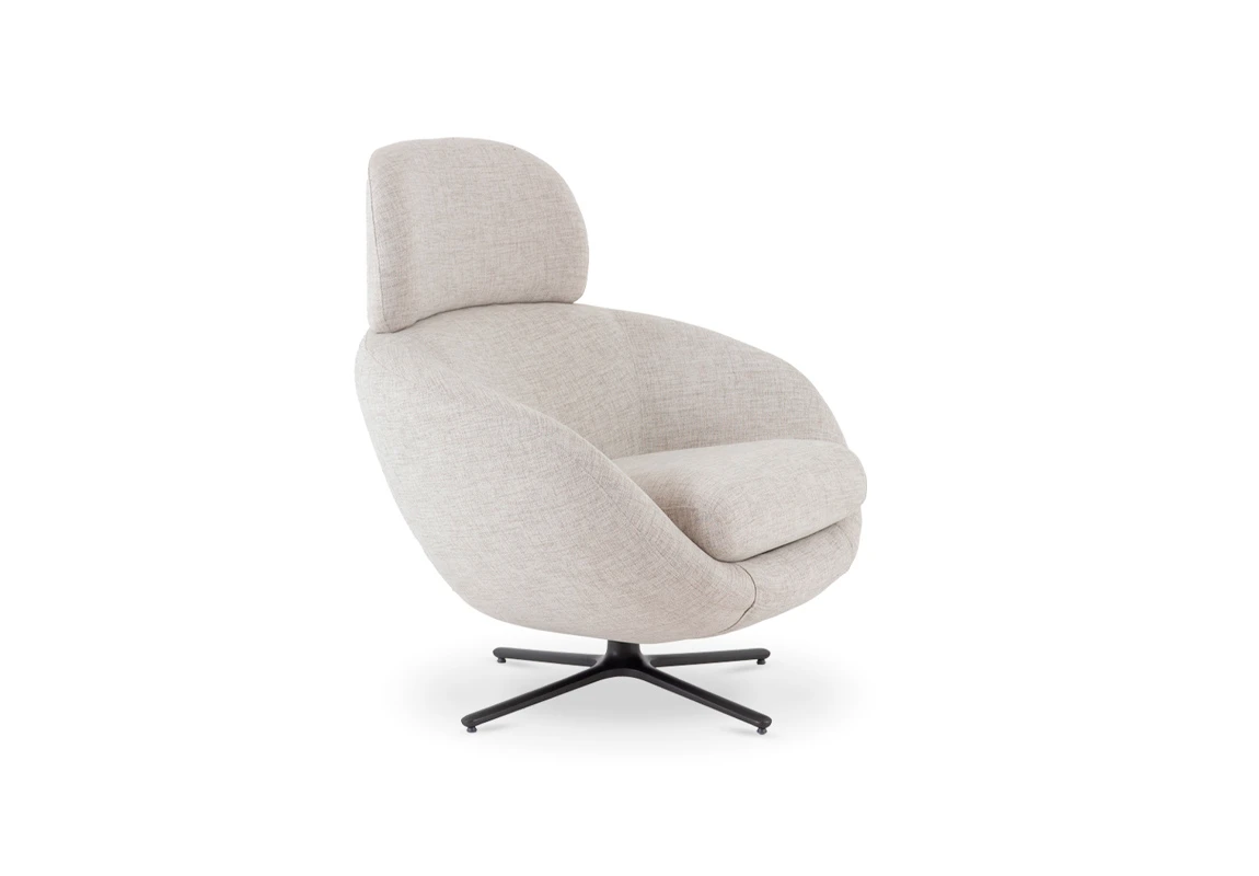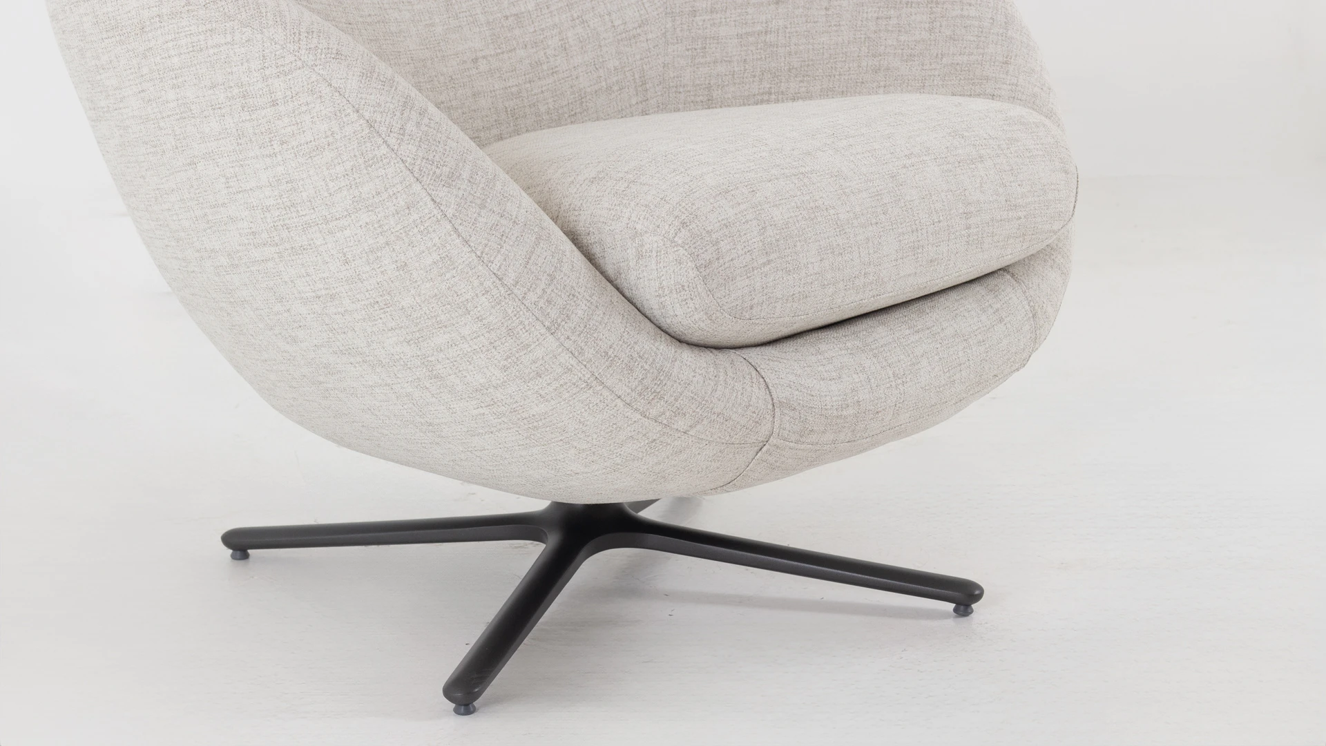 Sillón giratorio Nexo. Estructura realizada en aluminio con terminación en color negro. Cinchas, resortes y poliester de distintas densidades garantizan la comodidad y durabilidad y tapizado en tela rústica color light grey *Este producto no es customizable*