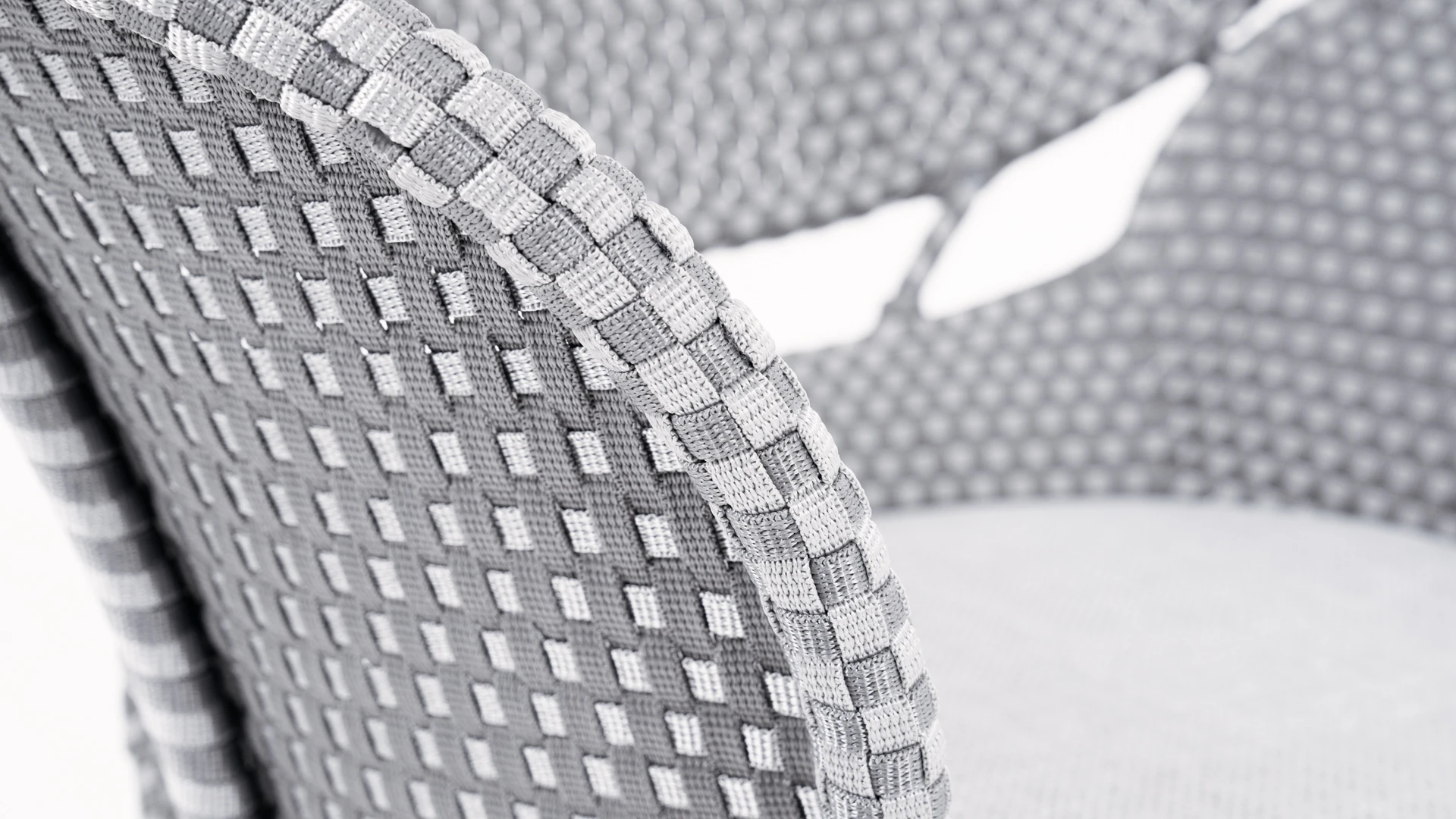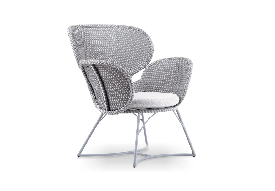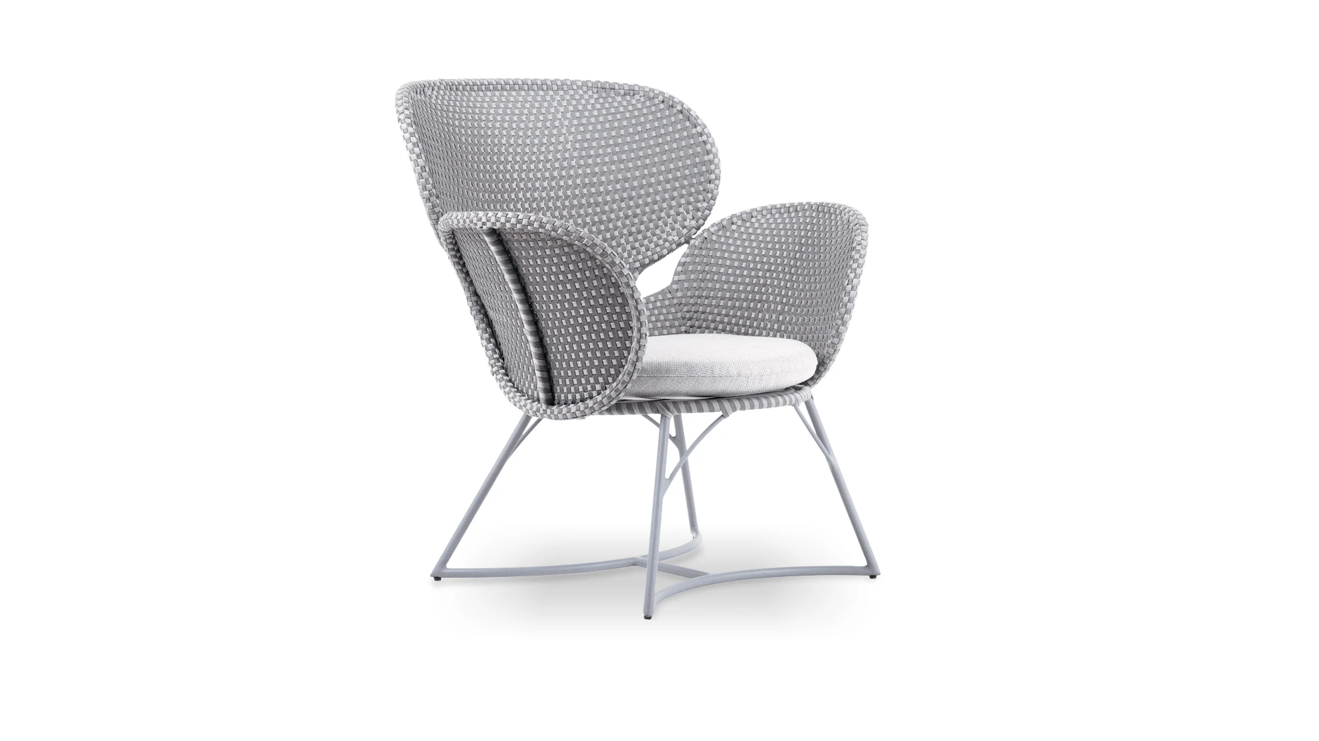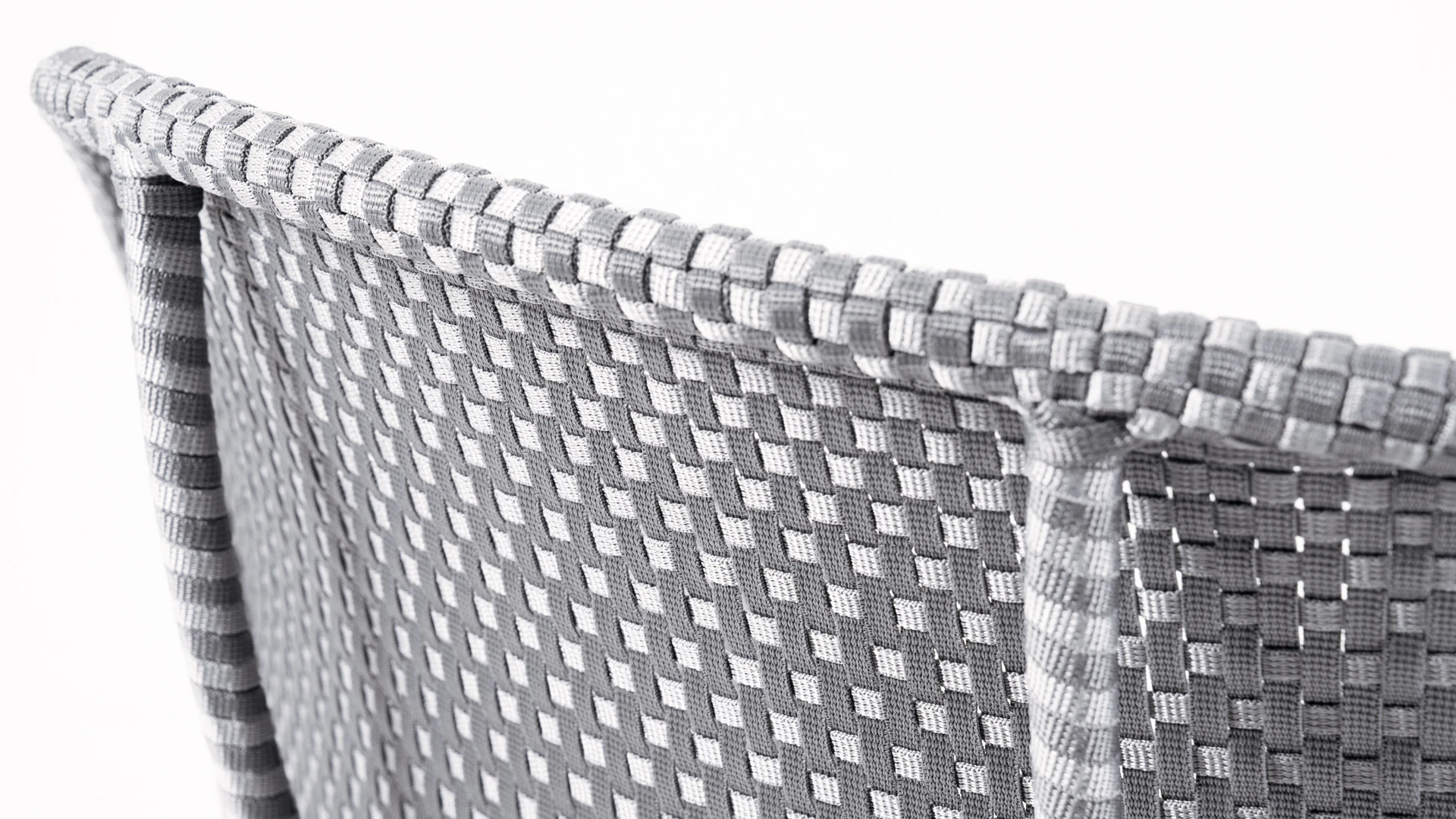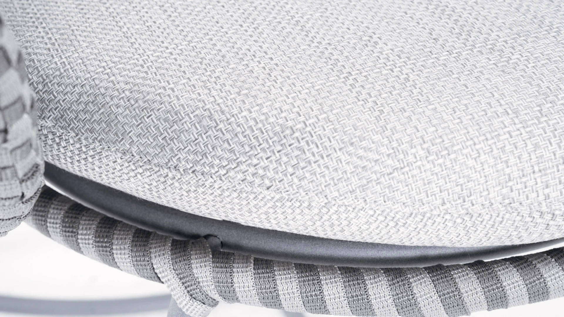 Poltrona Saint Jordi. Cuenta con una estructura de aluminio y terminación con pintura electroestática gris. Respaldo realizado en fibras náuticas cocidas a mano con protección UVA de 10mm y el asiento realizado en tela naútica. *Este producto no es customizable*
