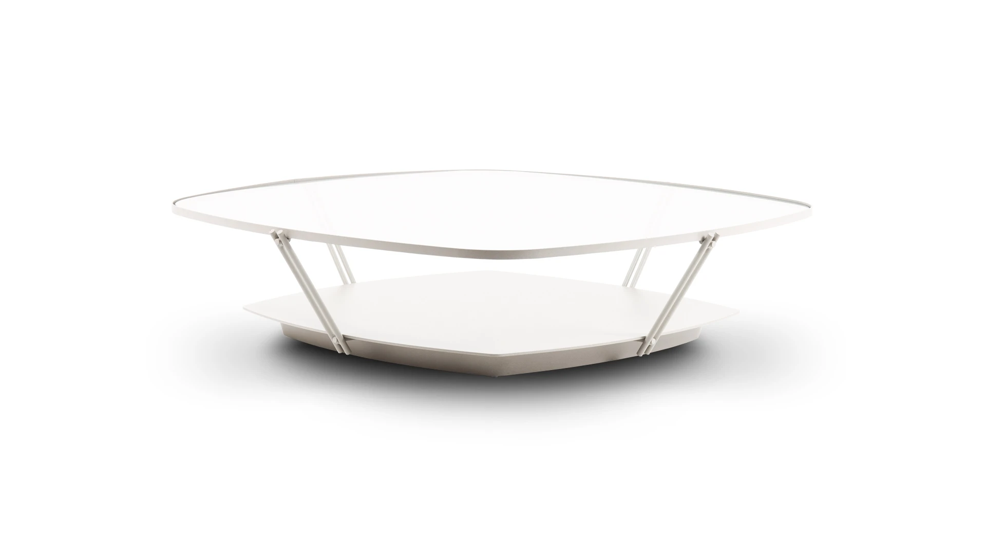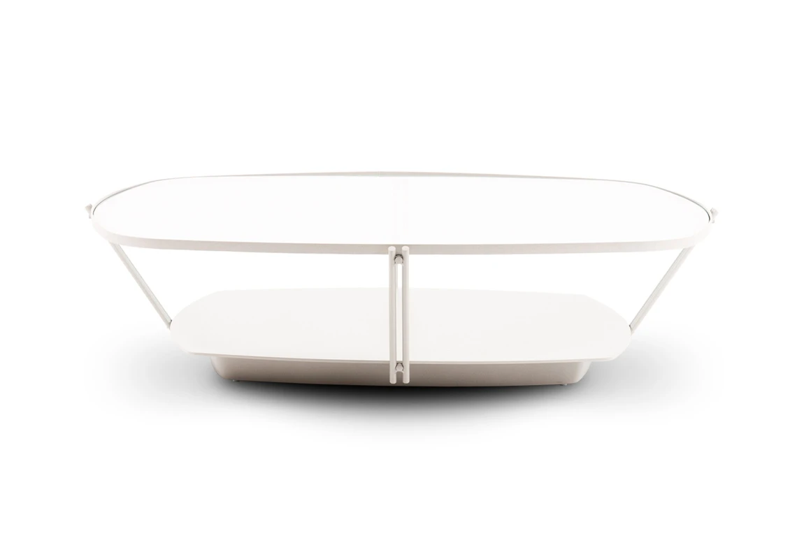 Mesa de centro Palmanova. Realizado con estructura de aluminio y terminación con pintura electroestática color gris, además cuenta con una tapa de vidrio de 8mm *Este producto no es customizable*