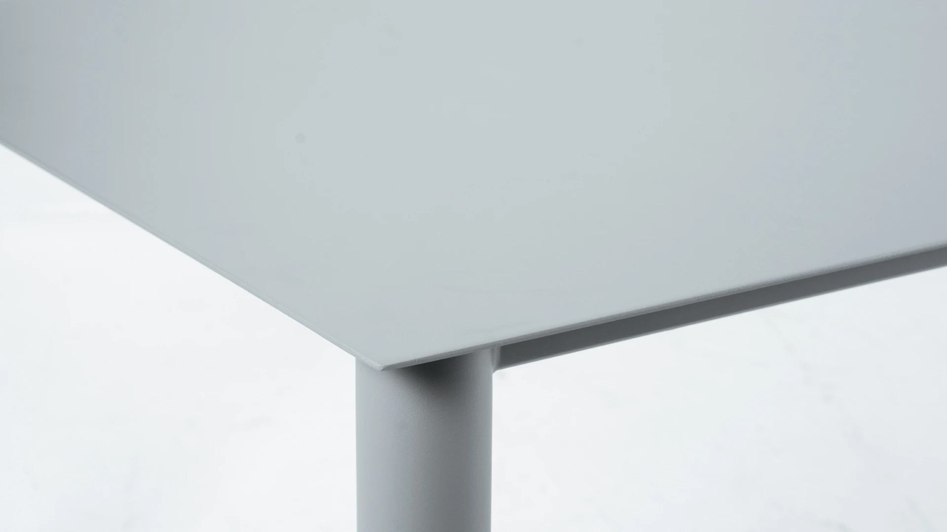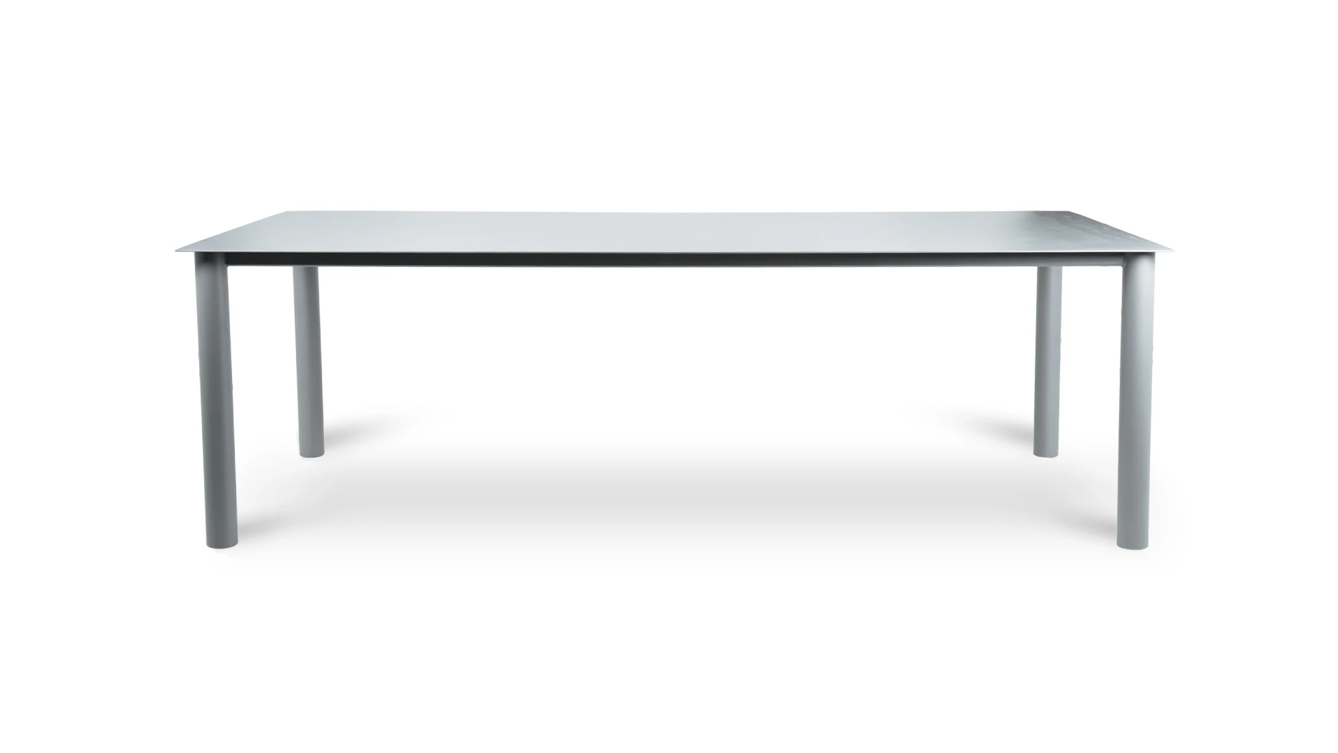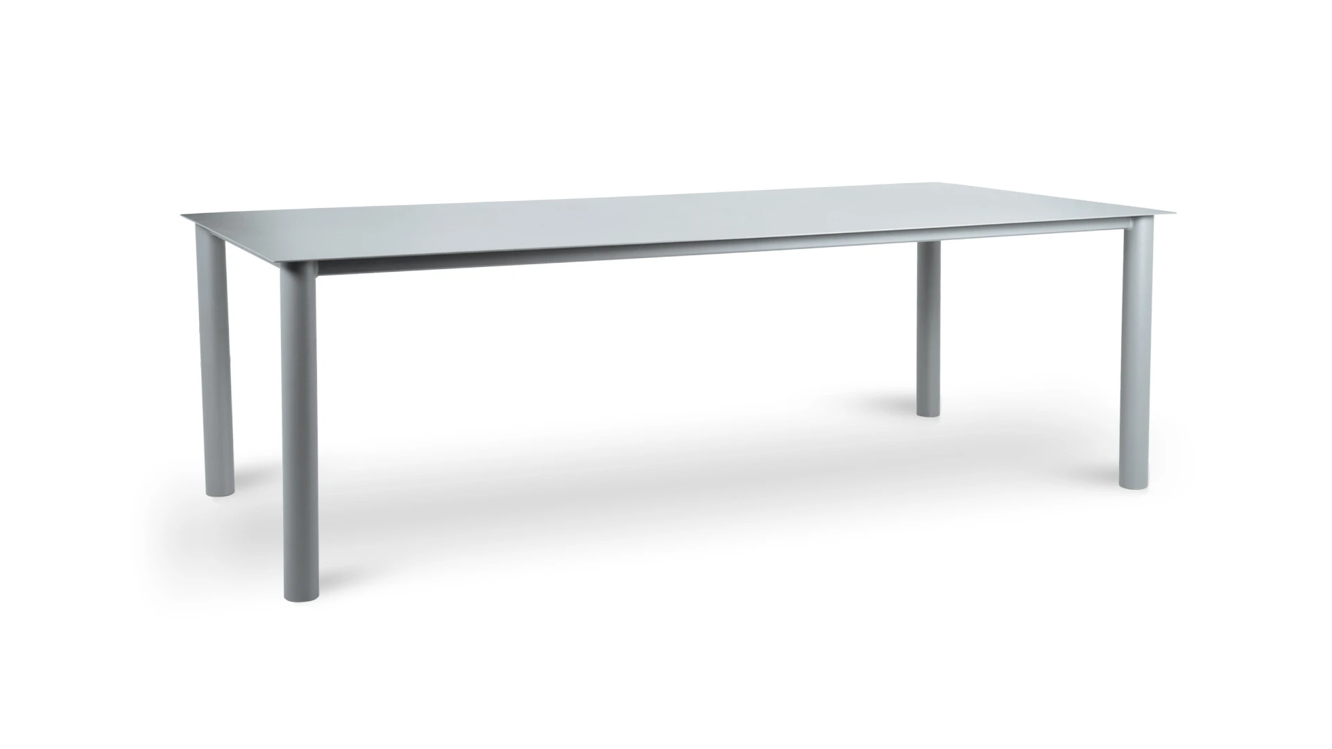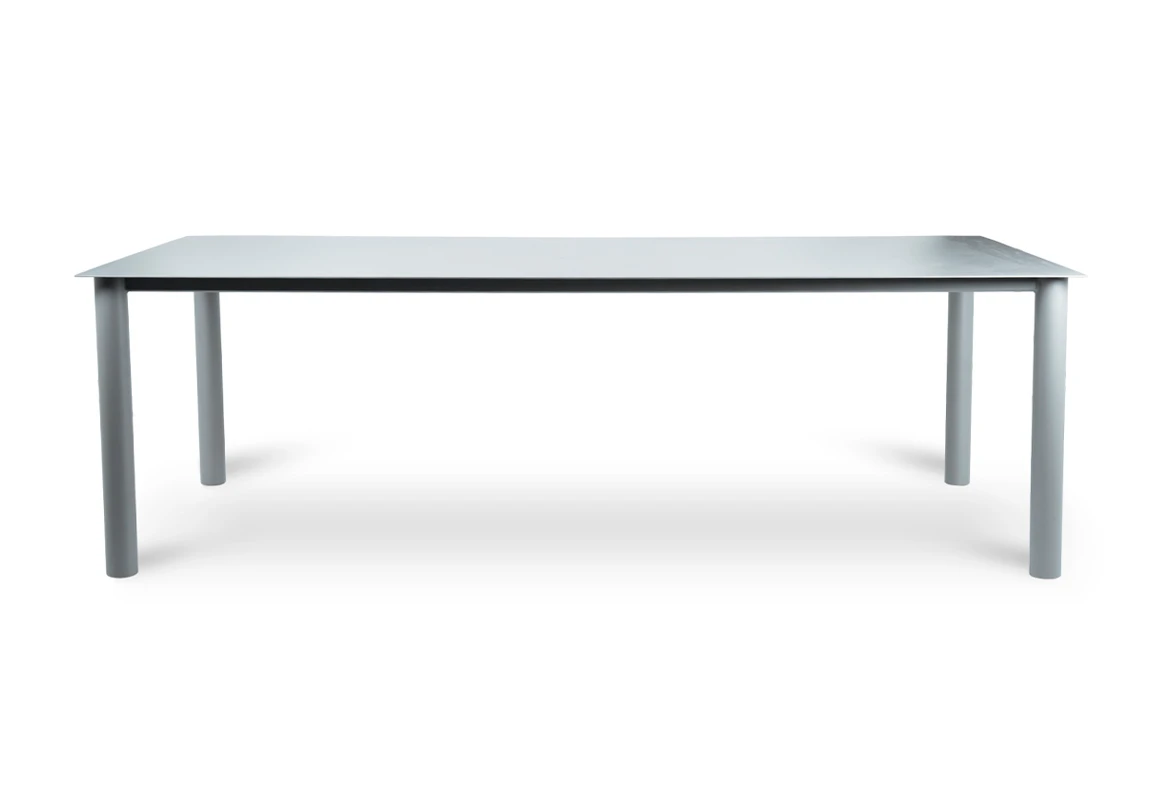 Mesa de comedor Creta. Realizada integramente en aluminio con recubrimiento poliuretánico terminada con pintura electroestática en color gris. *Este producto no es customizable*