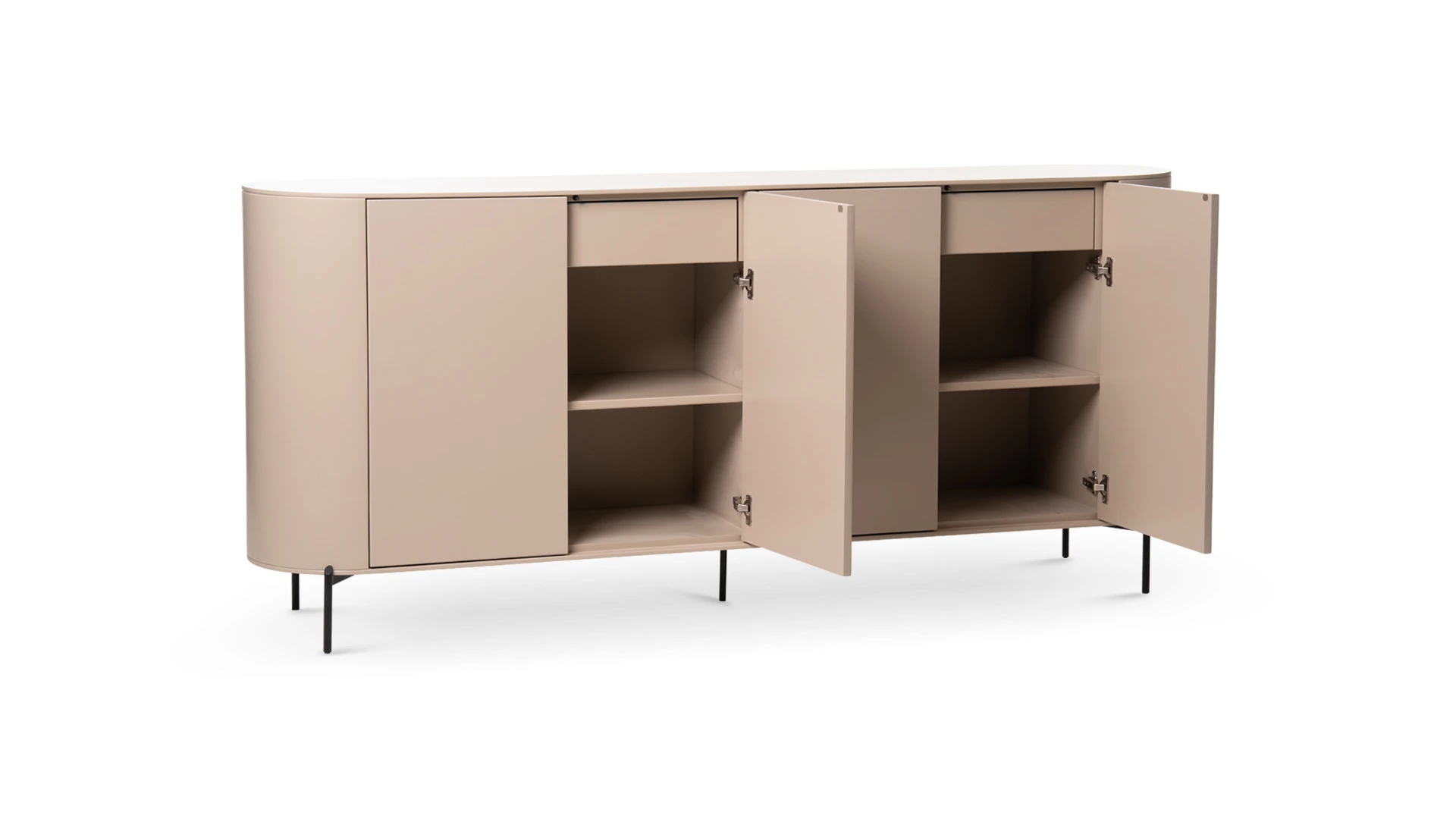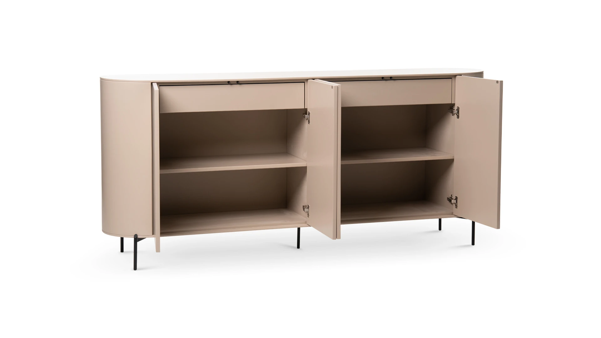 Aparador Vossa. Fabricado en madera laqueada semimate, patas realizadas en hierro con terminación en negro epoxy semimate. *Este producto es customizable*