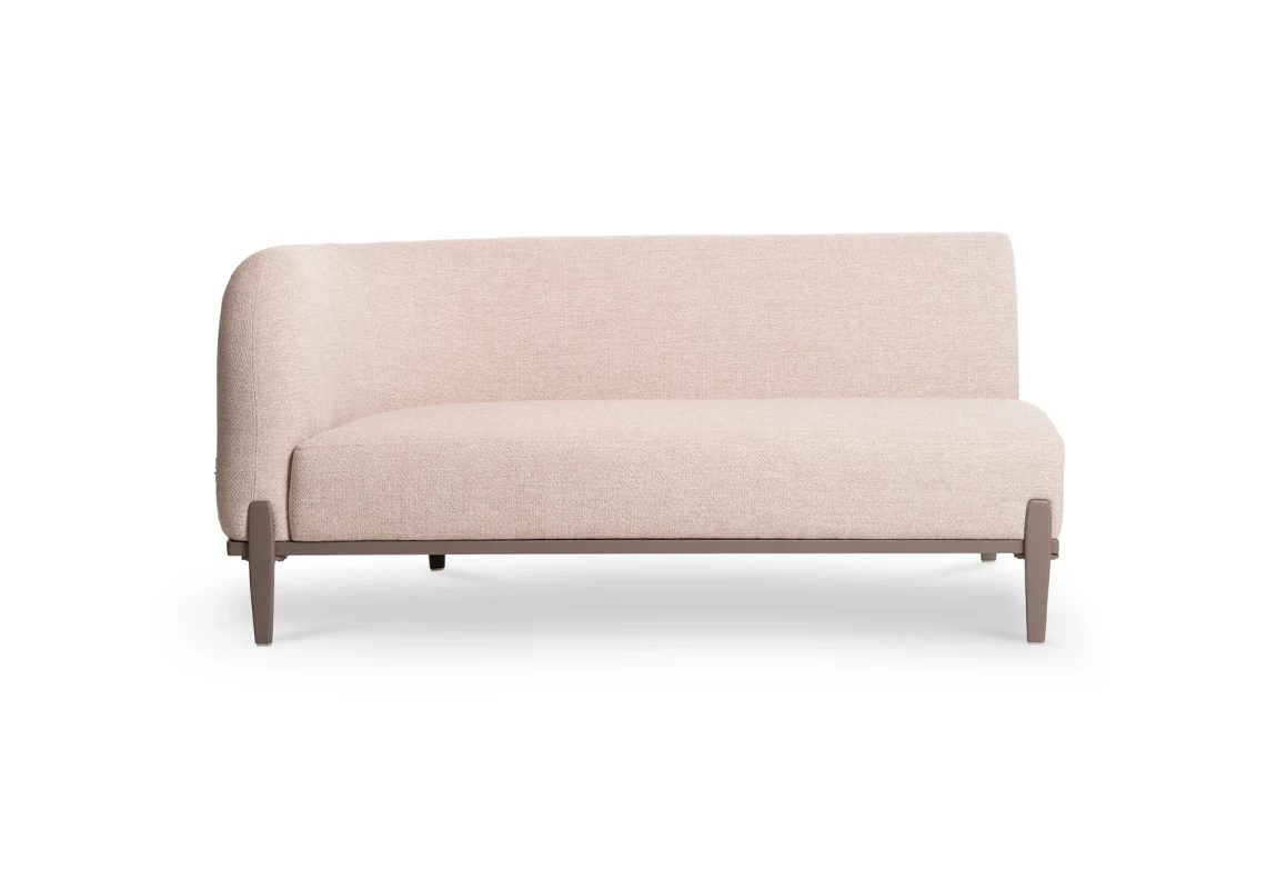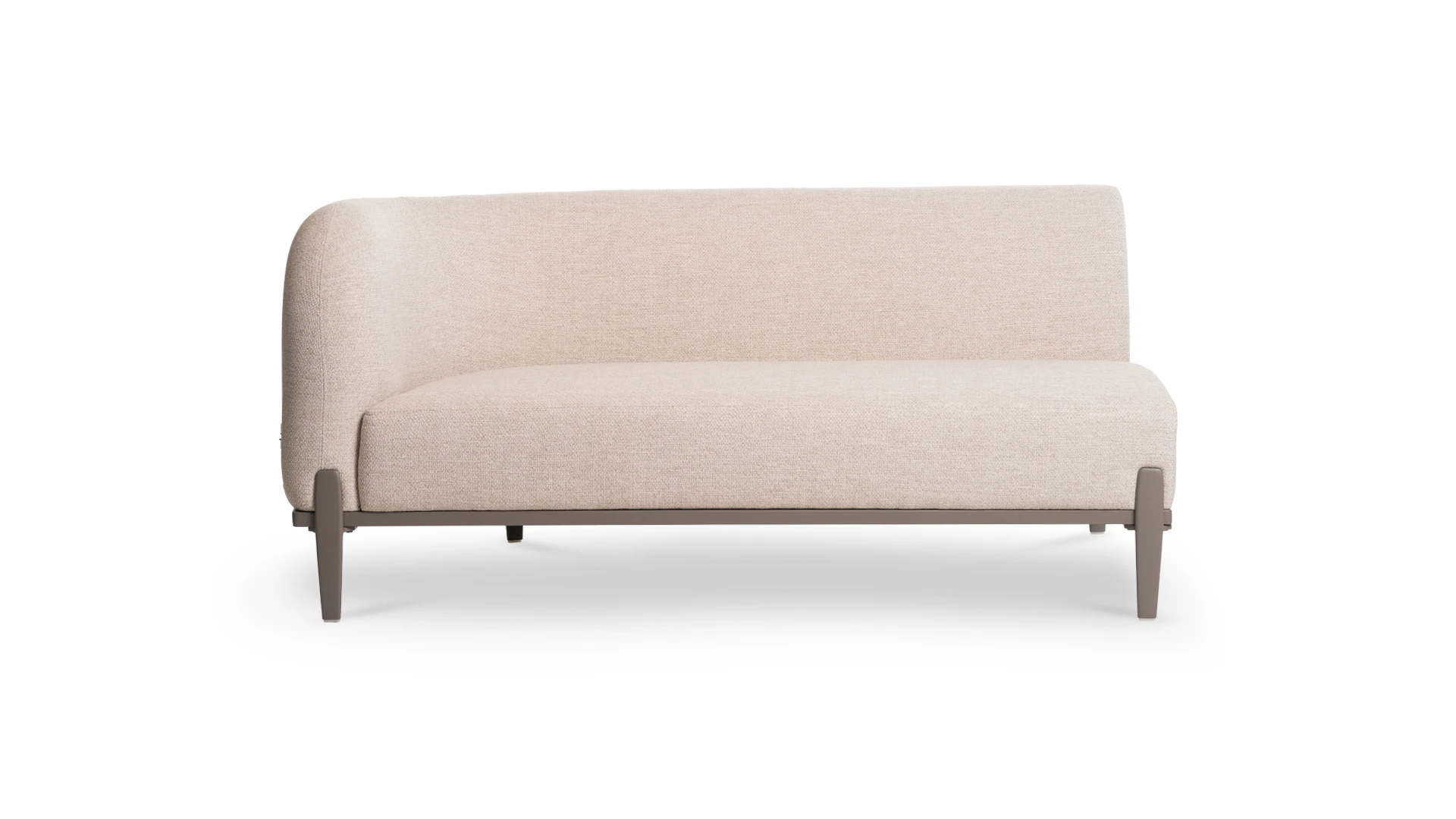 Sofá Proa. Cuenta con una estructura de aluminio con terminación con pintura electroestática. Y además esta tapizado con tela naútica. Este producto debe ser utilizado en espacios semicubiertos o galerías. No exponerlo a la intemperie de manera directa. Se recomienda utilizar una funda protectora. **Este producto no es customizable**