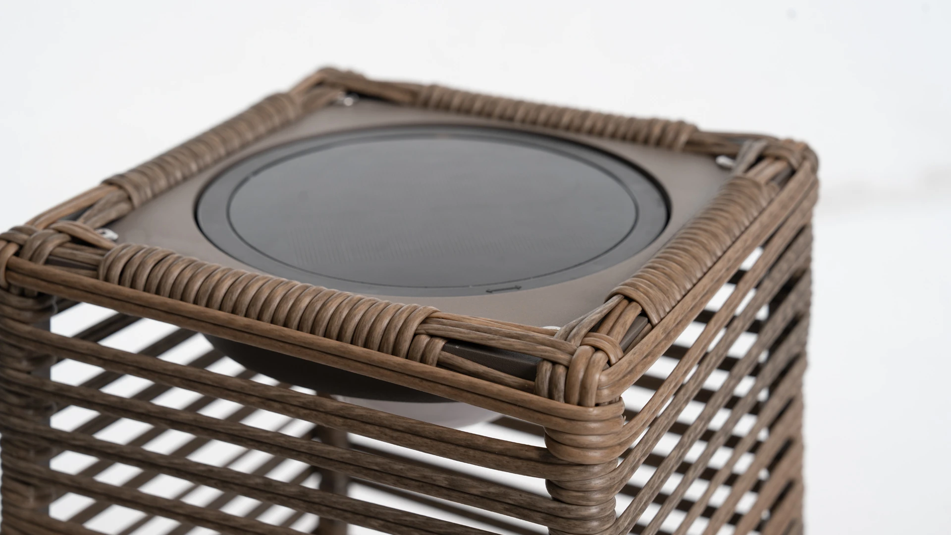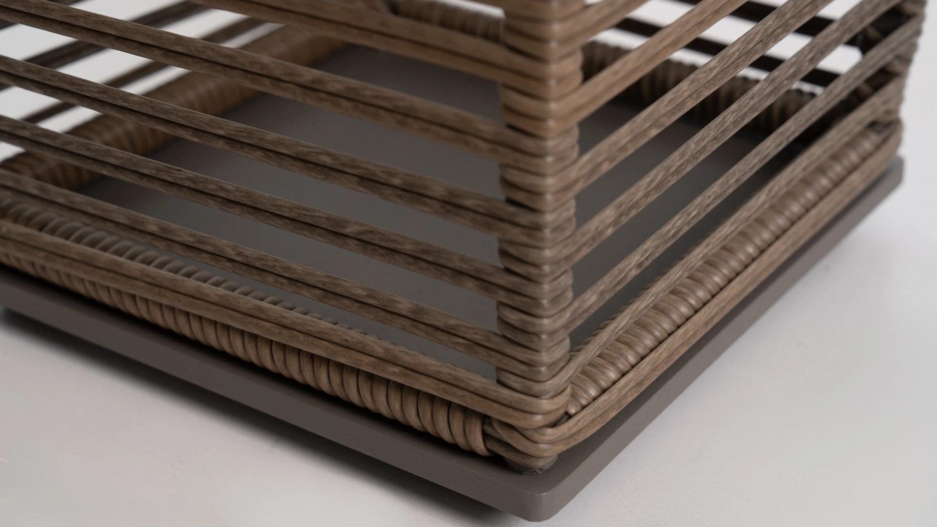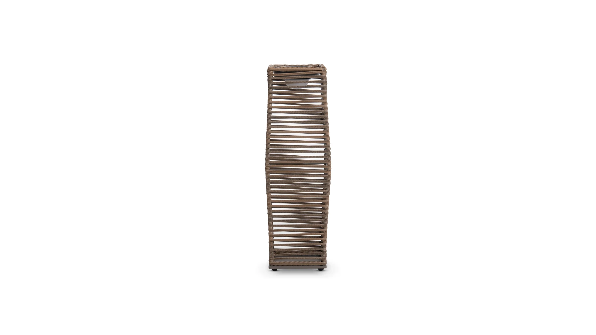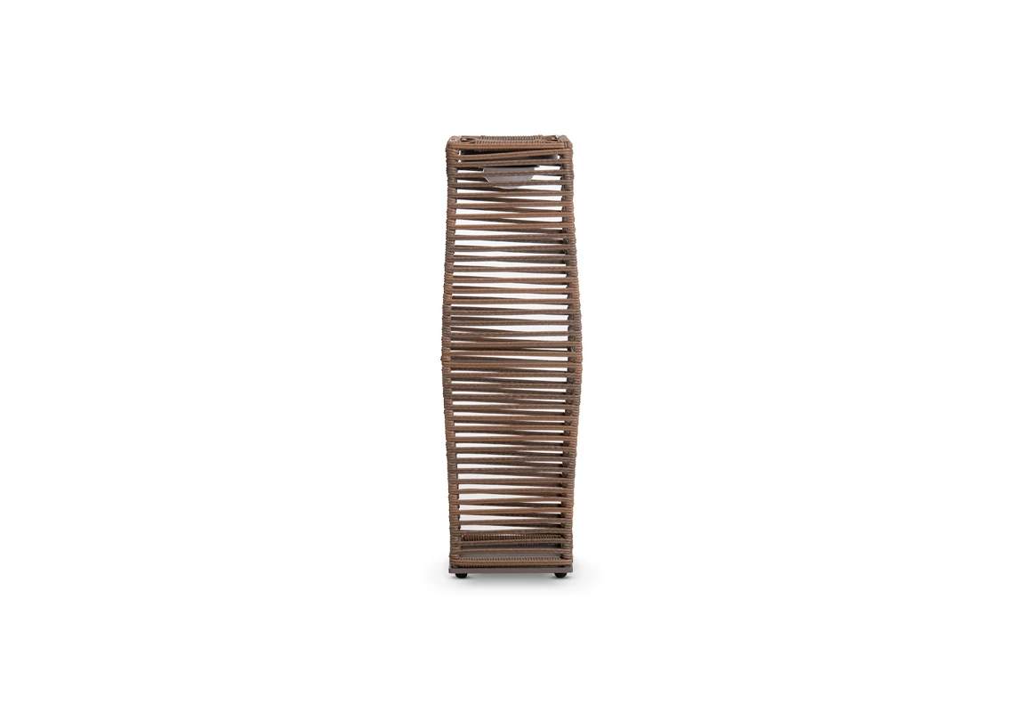 Lampara Nepal. Cuenta con una estructura de aluminio y recubierto con cuerda de ratan. Este producto debe ser utilizado en espacios semicubiertos o galerías. No exponerlo a la intemperie de manera directa. **Este producto no es customizable**