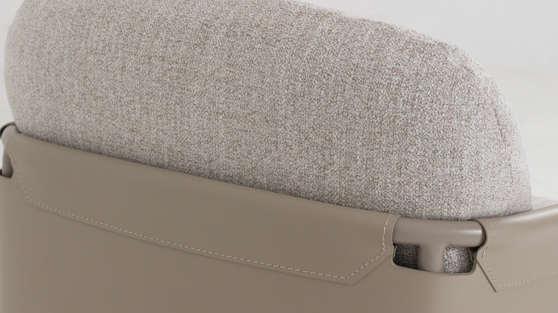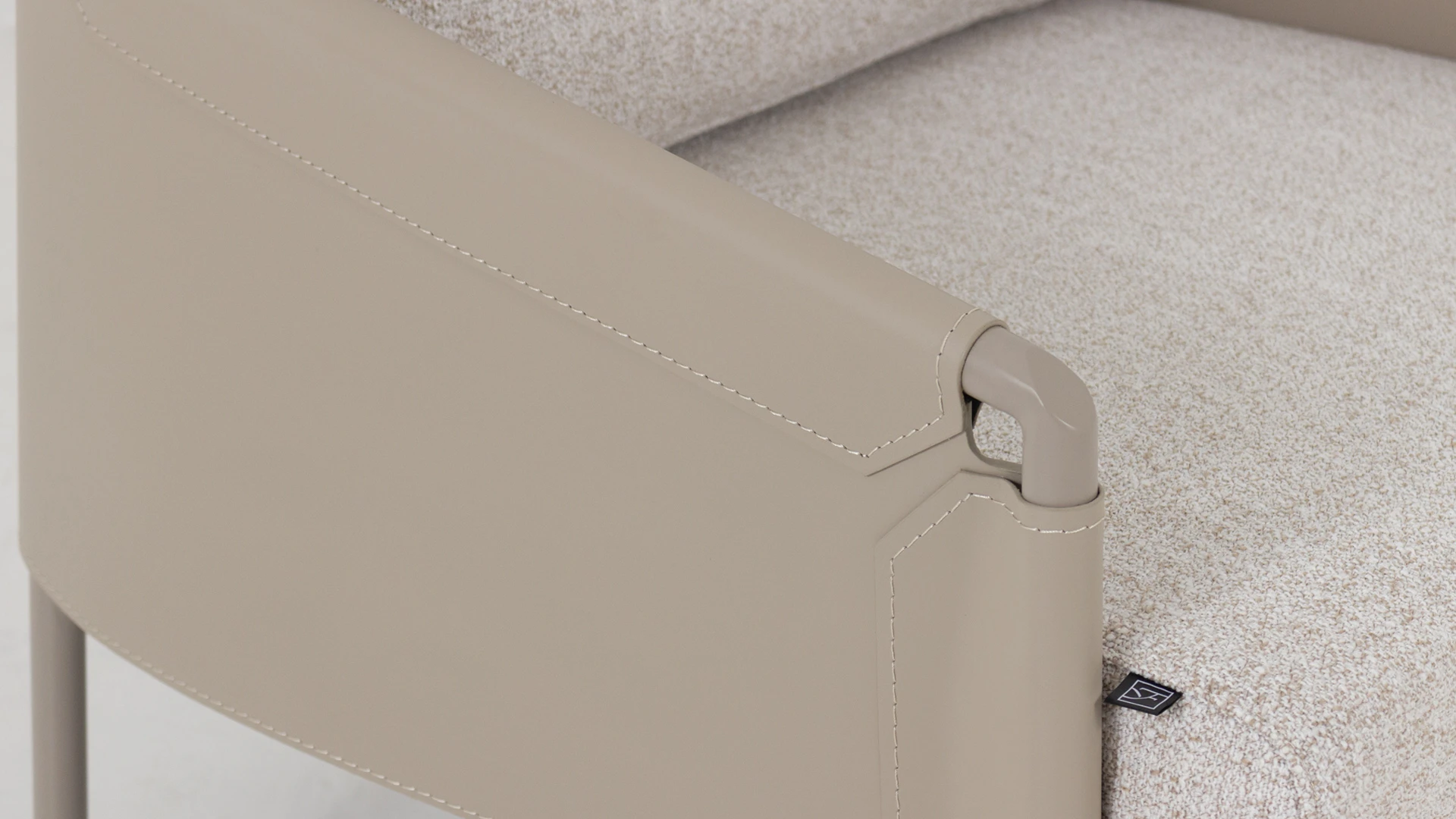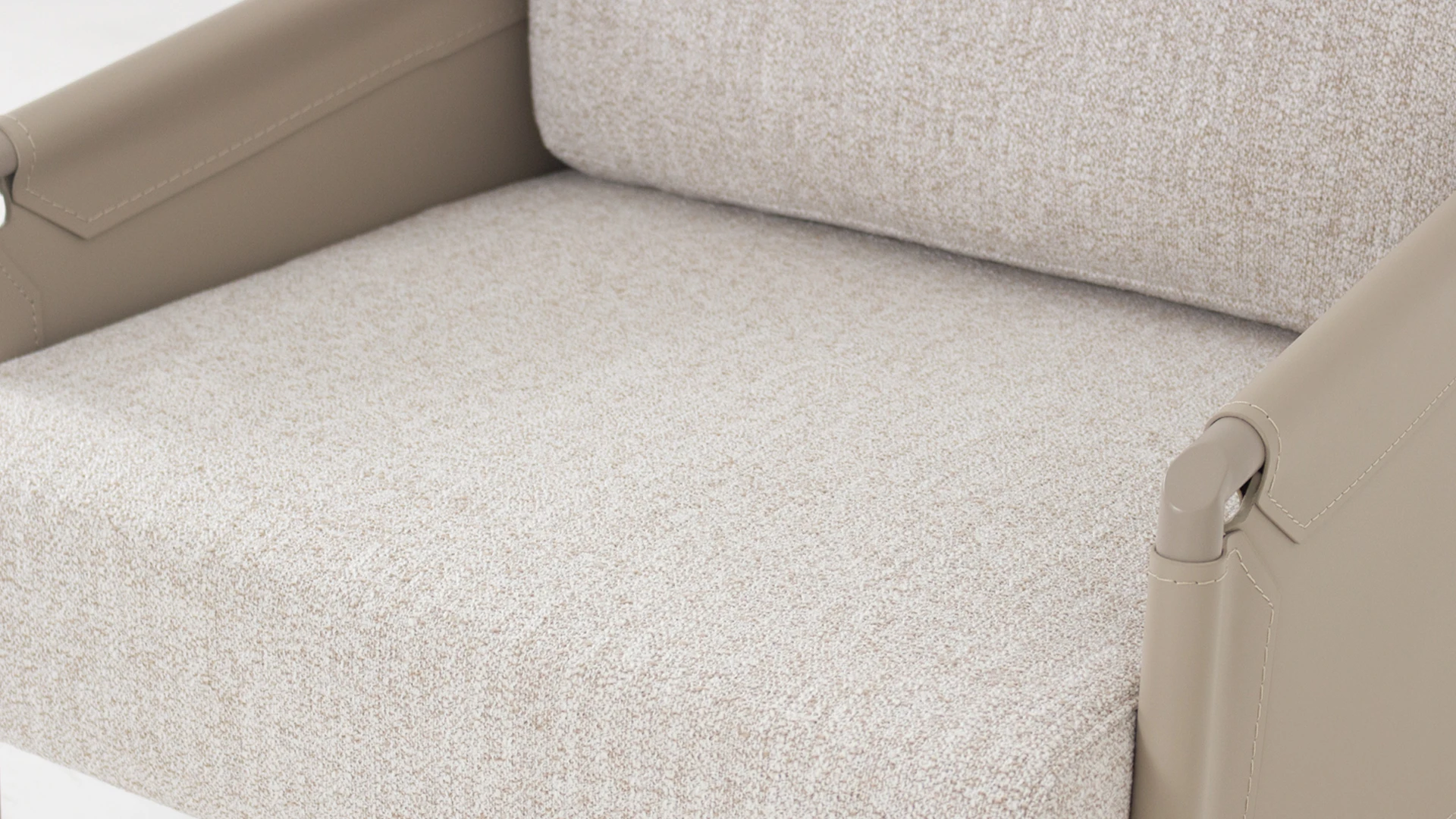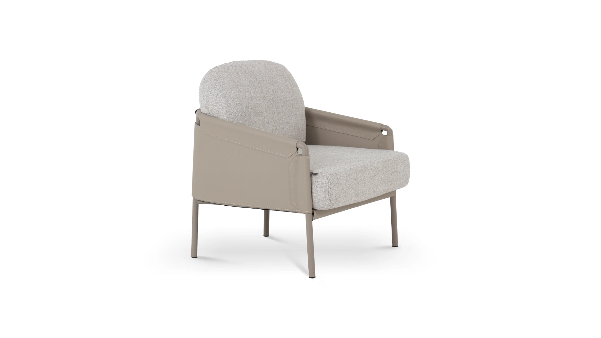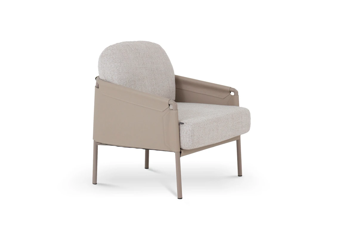 Poltrona Flat. Estructura realizada en hierro con terminación laqueada, apoyabrazos y respaldo tapizados en eco-cuero y asiento tapizado con tela rústica **este producto no es customizable**