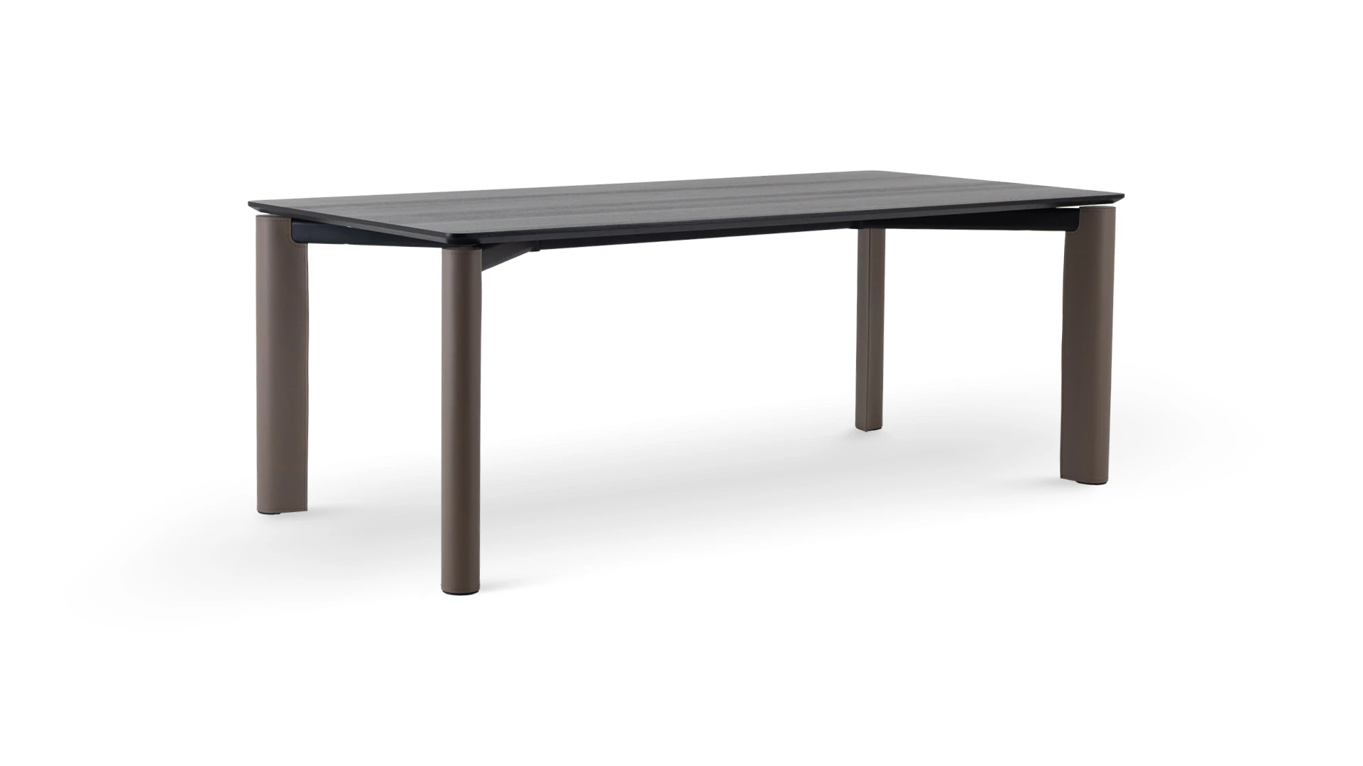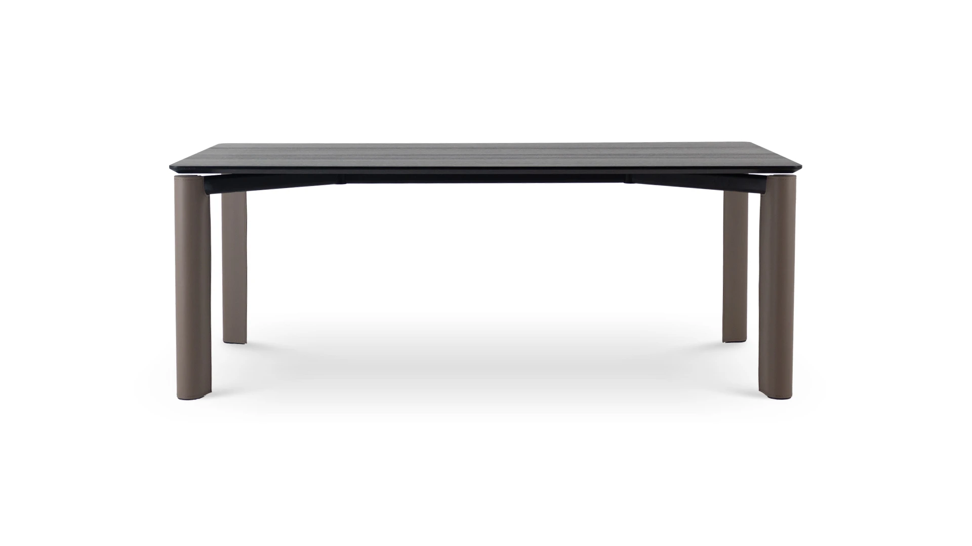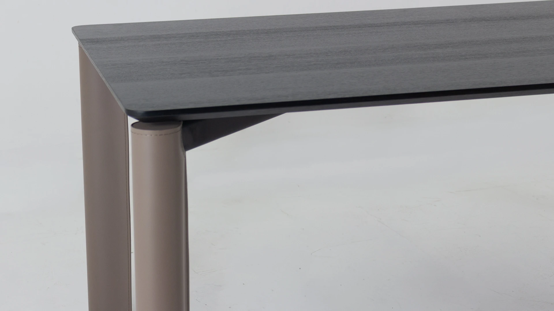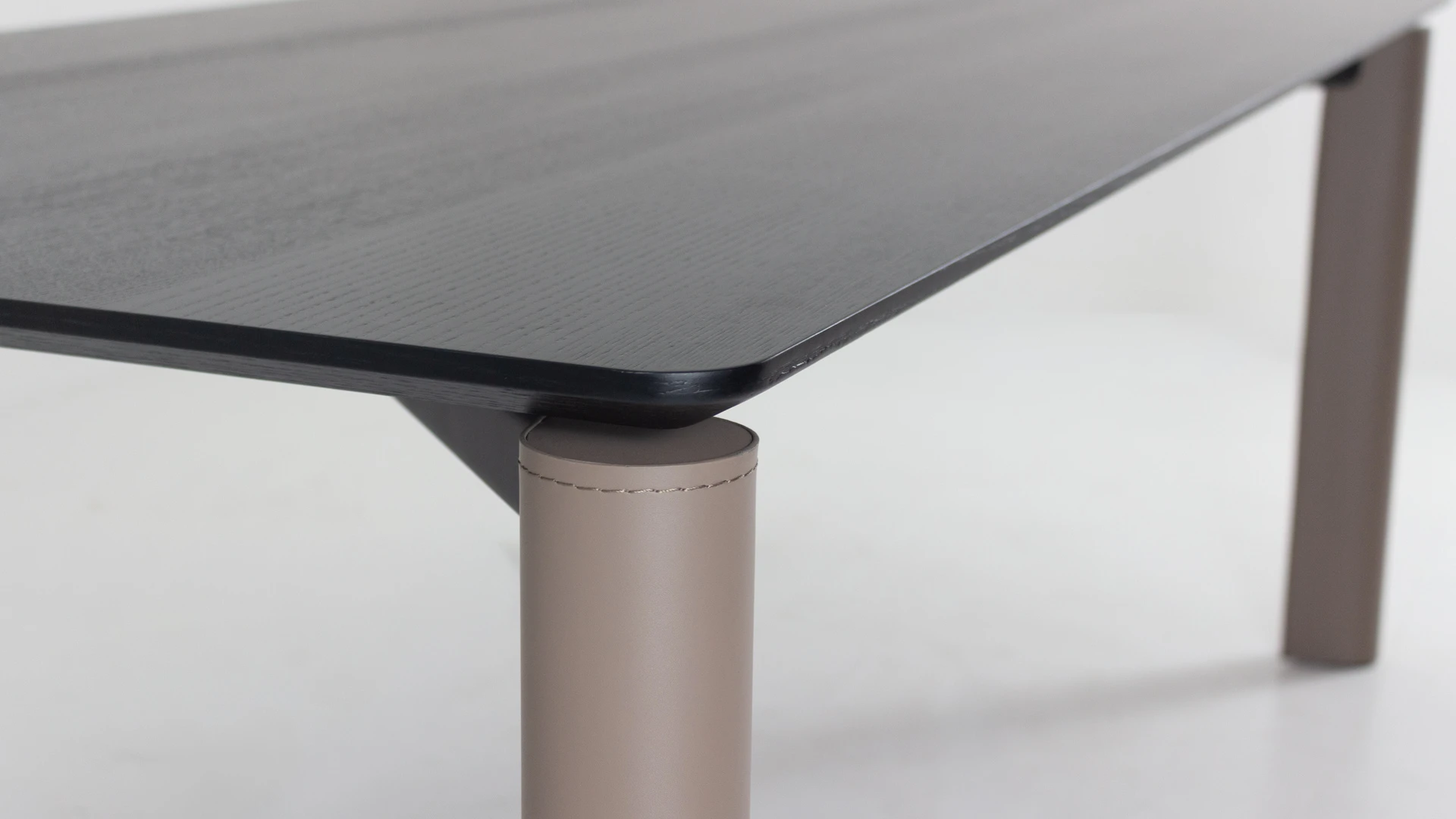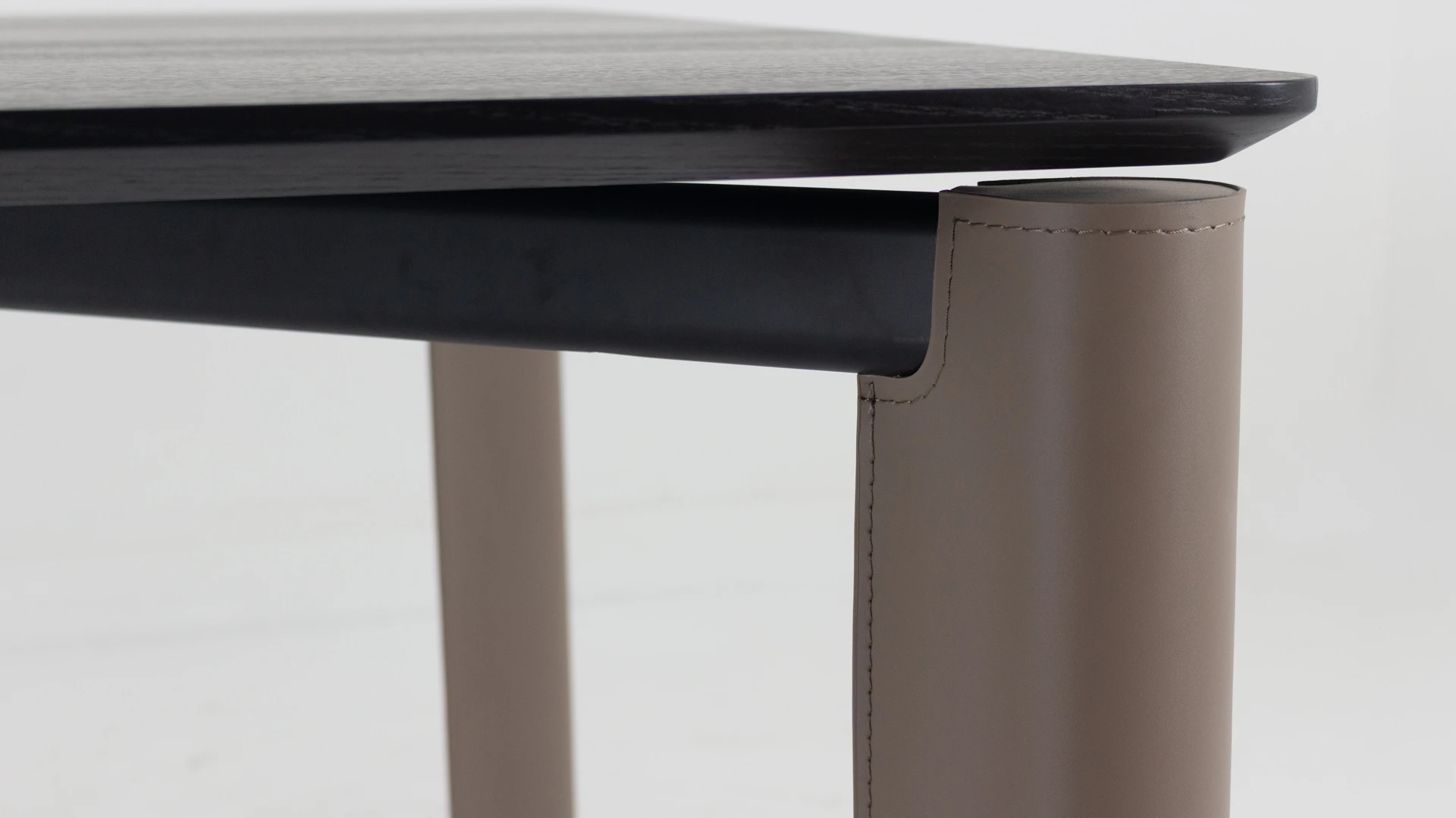 Mesa de comedor Cavett. Estructura realizada en hierro tapizada con eco-cuero y tapa realizada en madera de lenga con terminacion en poro abierto color negro **este producto no es customizable**