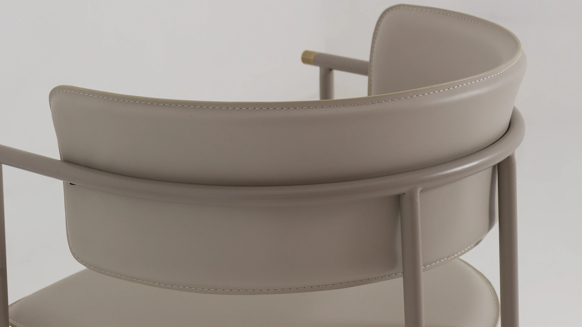Silla de comedor Hunter. Estructura realizada en hierro con terminación laqueada, respaldo y asiento tapizados en eco-cuero **este producto no es customizable**