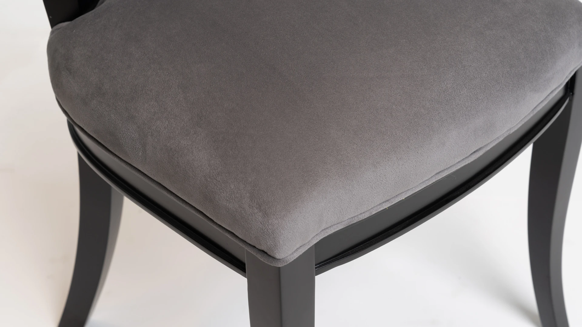 Silla de líneas clásicas reinterpretadas con elegancia contemporánea. Sobria, refinada y envolvente, tapizada en pana Porsche Nickel, es una pieza que eleva cualquier comedor o espacio de reunión con carácter y distinción.