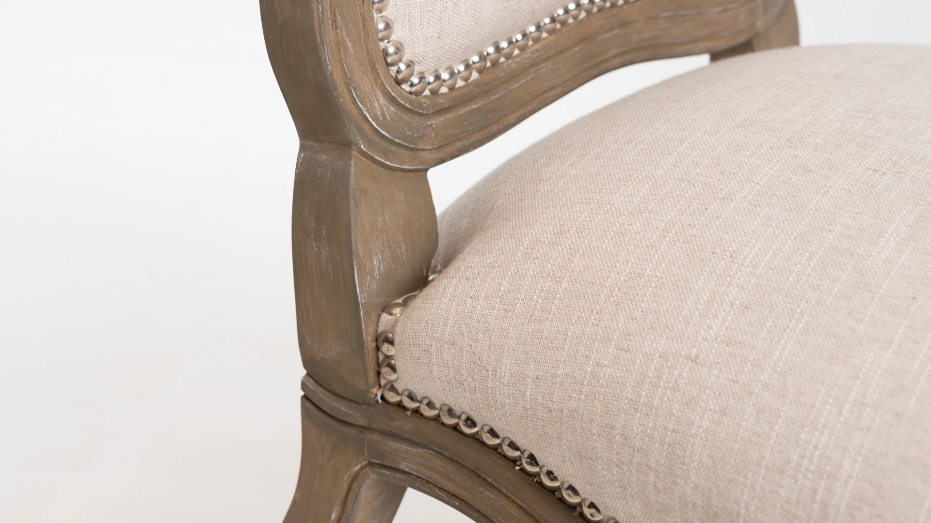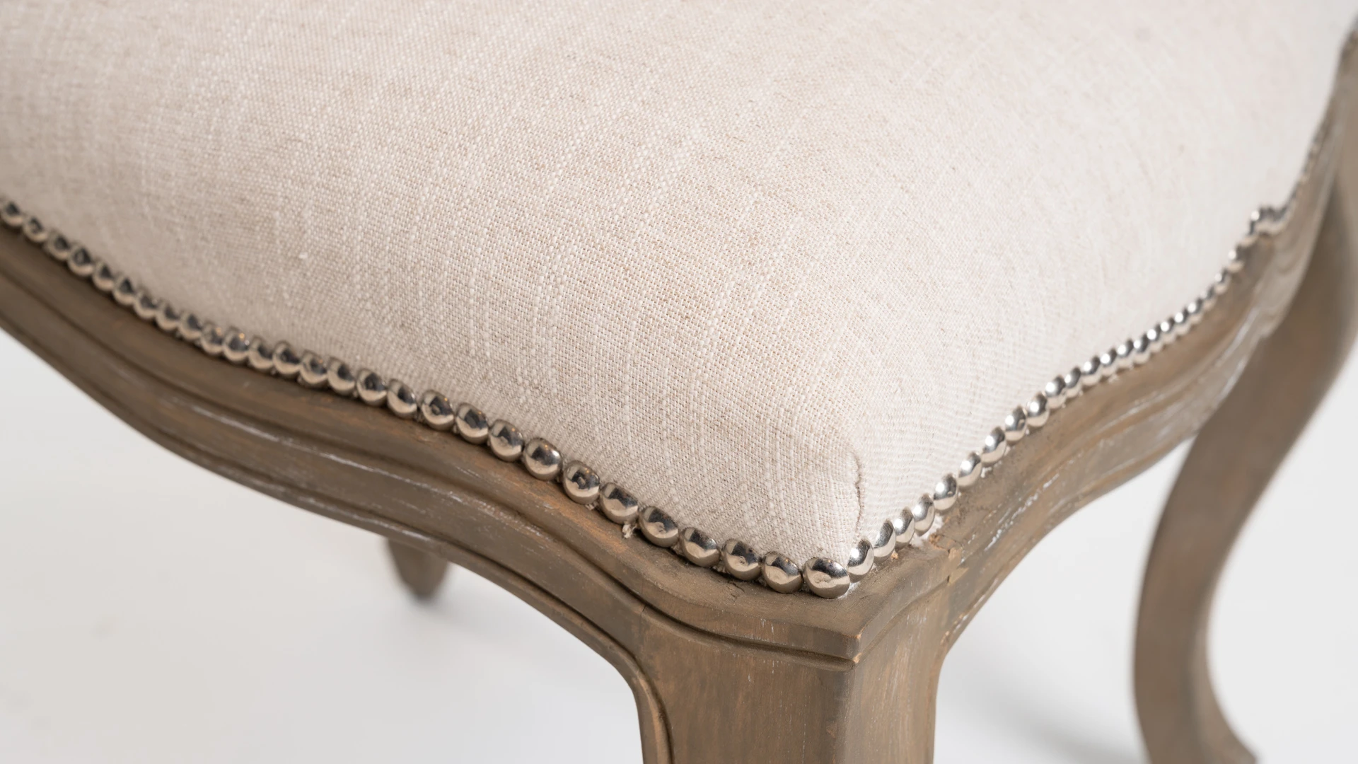 El tapizado en lino aporta una textura natural y una lectura visual liviana, ideal para espacios clásicos, neoclásicos o de inspiración francesa contemporánea.
