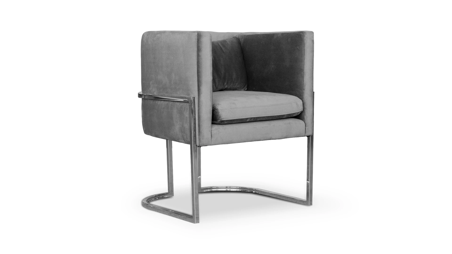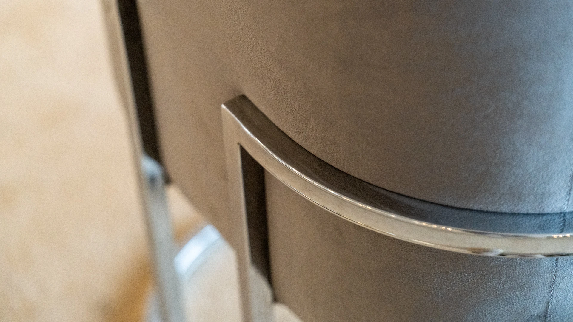 Jackie, un sillón diseñado para combinar a la perfección un estructura metálica y curva, con un asiento ergonómico tapizado en pana Porsche nickel (incluye riñoreo, misma terminación)