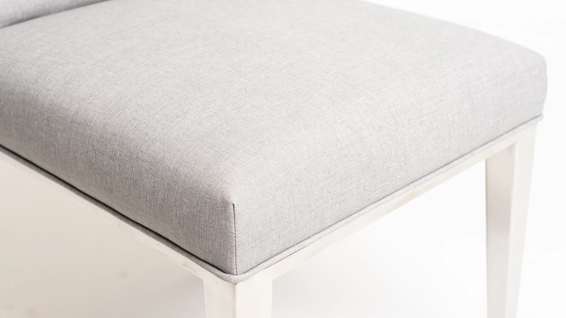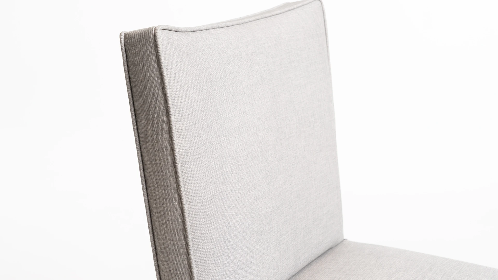 Silla de diseño moderno y líneas depuradas. Tapizada en tela Fiore color beige, que aporta calidez y neutralidad visual. Base fabricada en acero, brindando solidez estructural y un acabado contemporáneo.