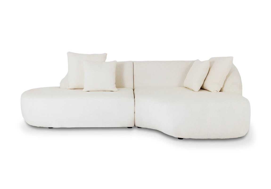 Sofá esquinero dos módulos Puro. Estructura de madera maciza. Cinchas, resortes y poliester de distintas densidades garantizan la comodidad y durabilidad. Tapizada en tela sheep. Patas de madera maciza lustradas. *Este producto es customizable*