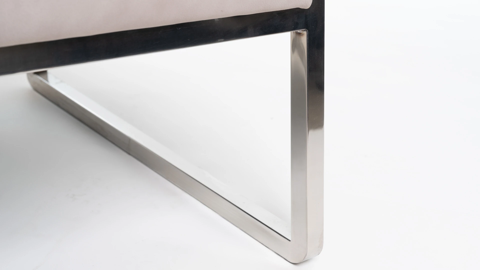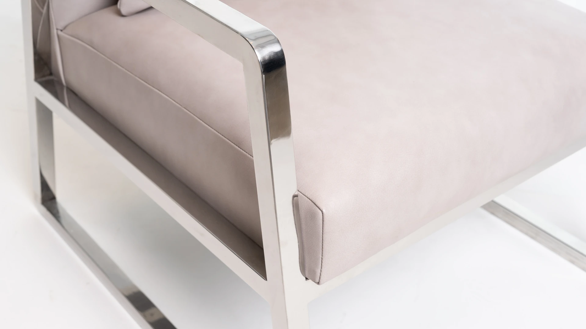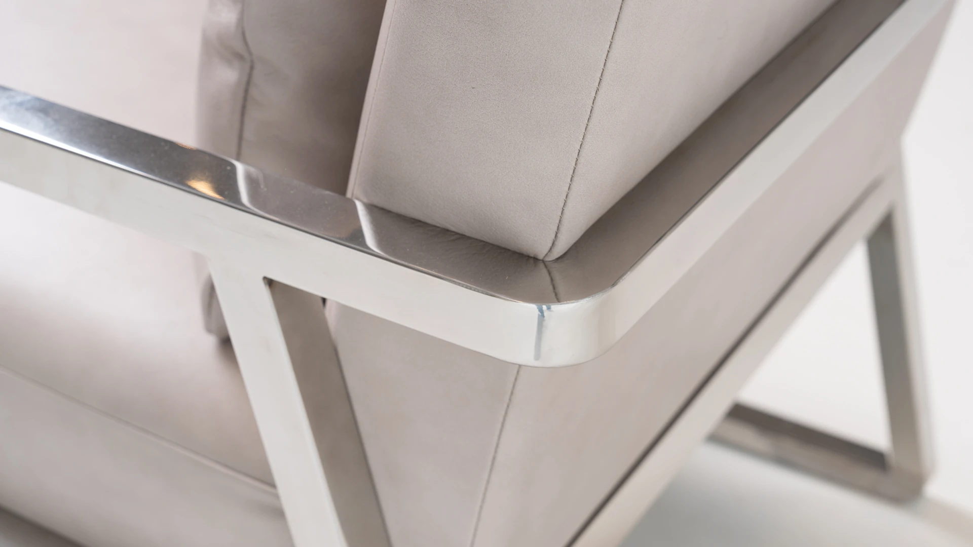 Con líneas rectas cromadas y una superficie suave. Estructura base de acero inoxidable, con pulido espejo combinada con asiento y respaldo de cuero liso beige. Producto de edición limitada. Consultar stock disponible. Precio final con descuento, incluye IVA y género. Para customizaciones que requieran un nuevo proceso de fabricación, se realizará una cotización especial