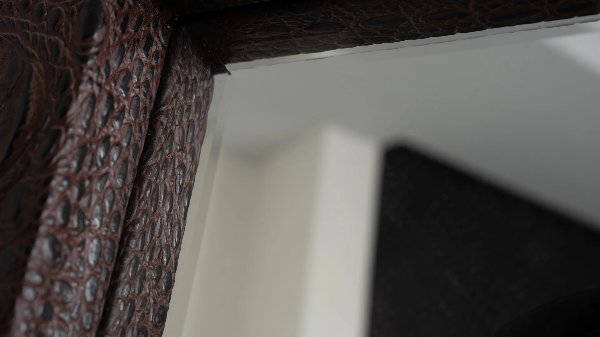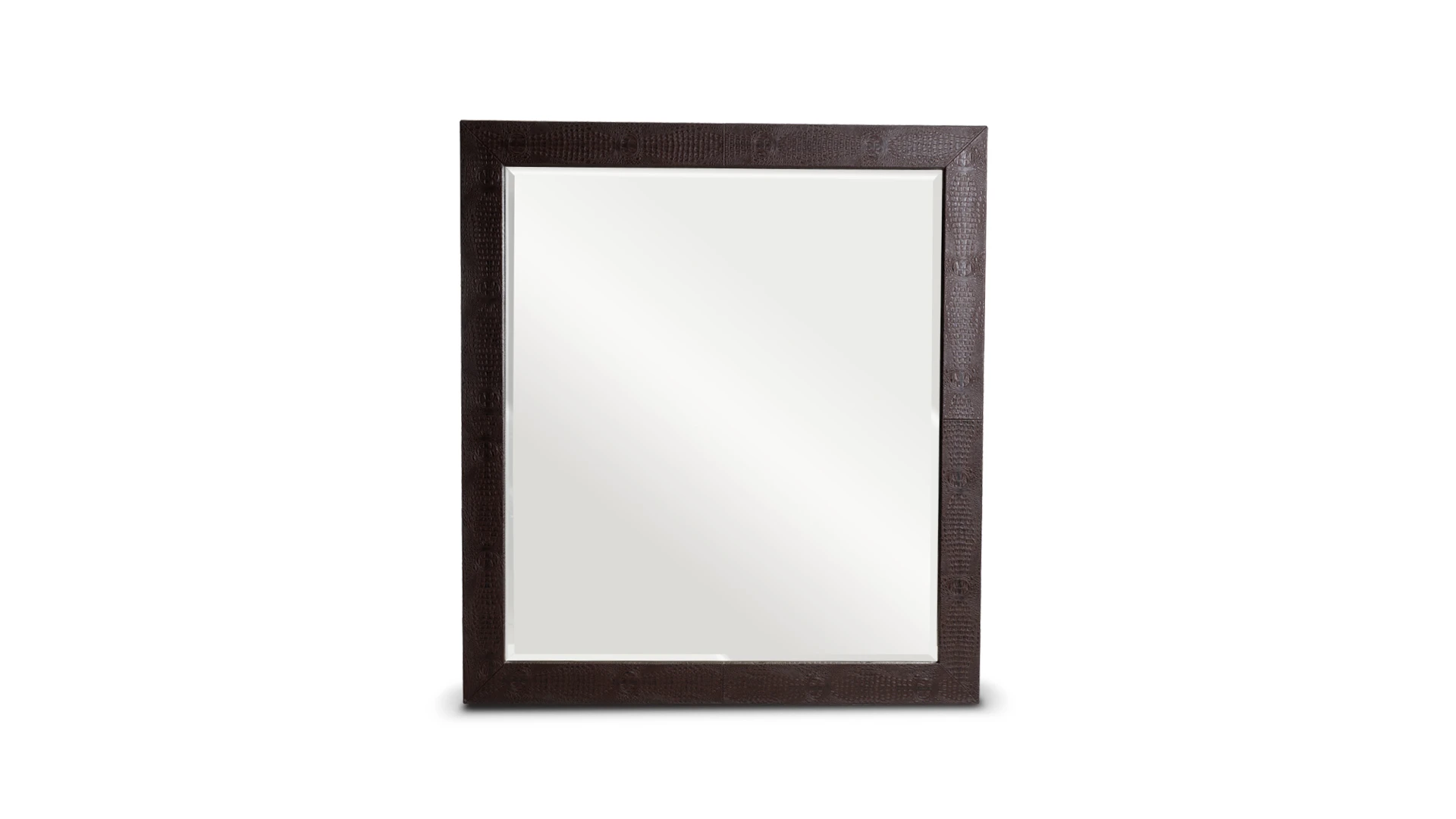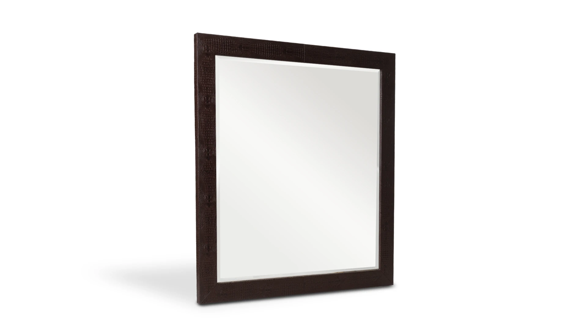 Marco de espejo Minary. Estructura realizada en madera, revestida en cuero crocco marrón, con terminación artesanal. Producto de edición limitada. Consultar stock disponible. Precio final con descuento, incluye IVA. Para customizaciones que requieran un nuevo proceso de fabricación, se realizará una cotización especial.