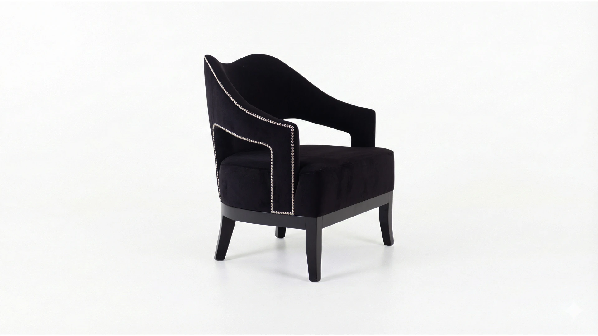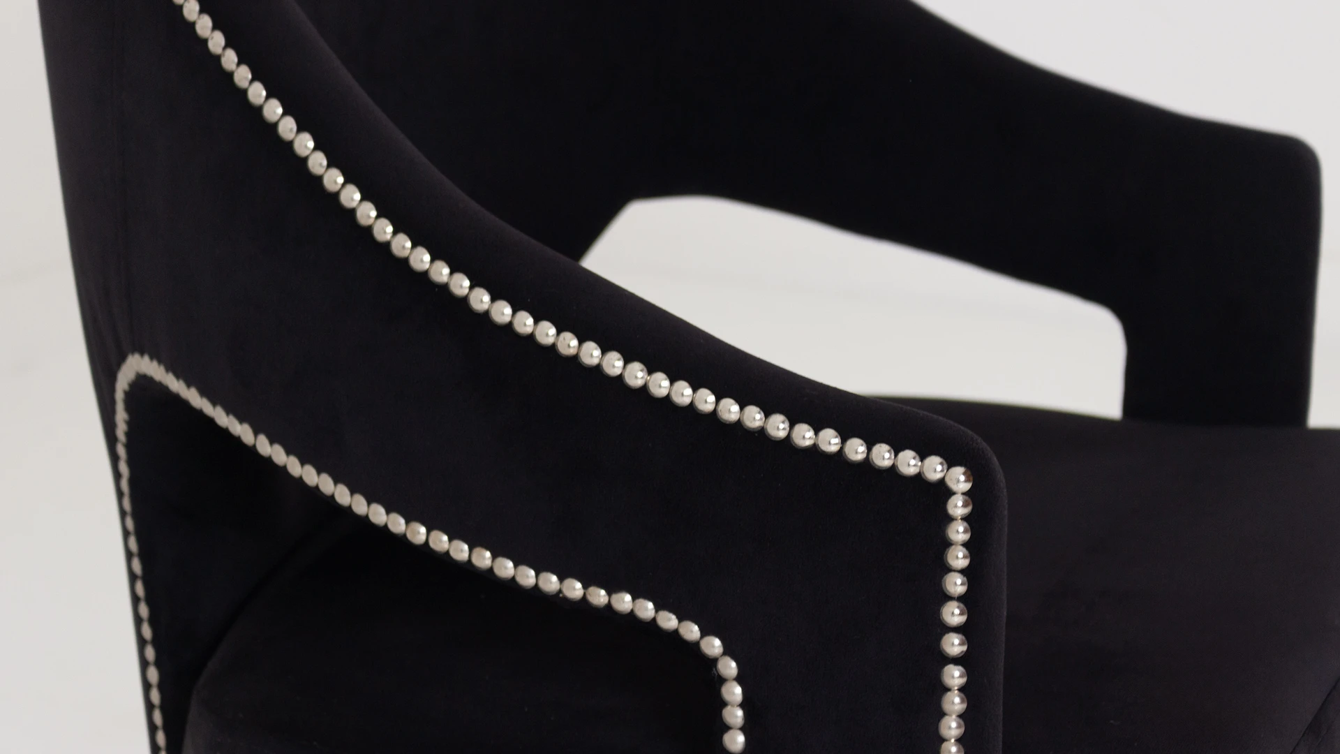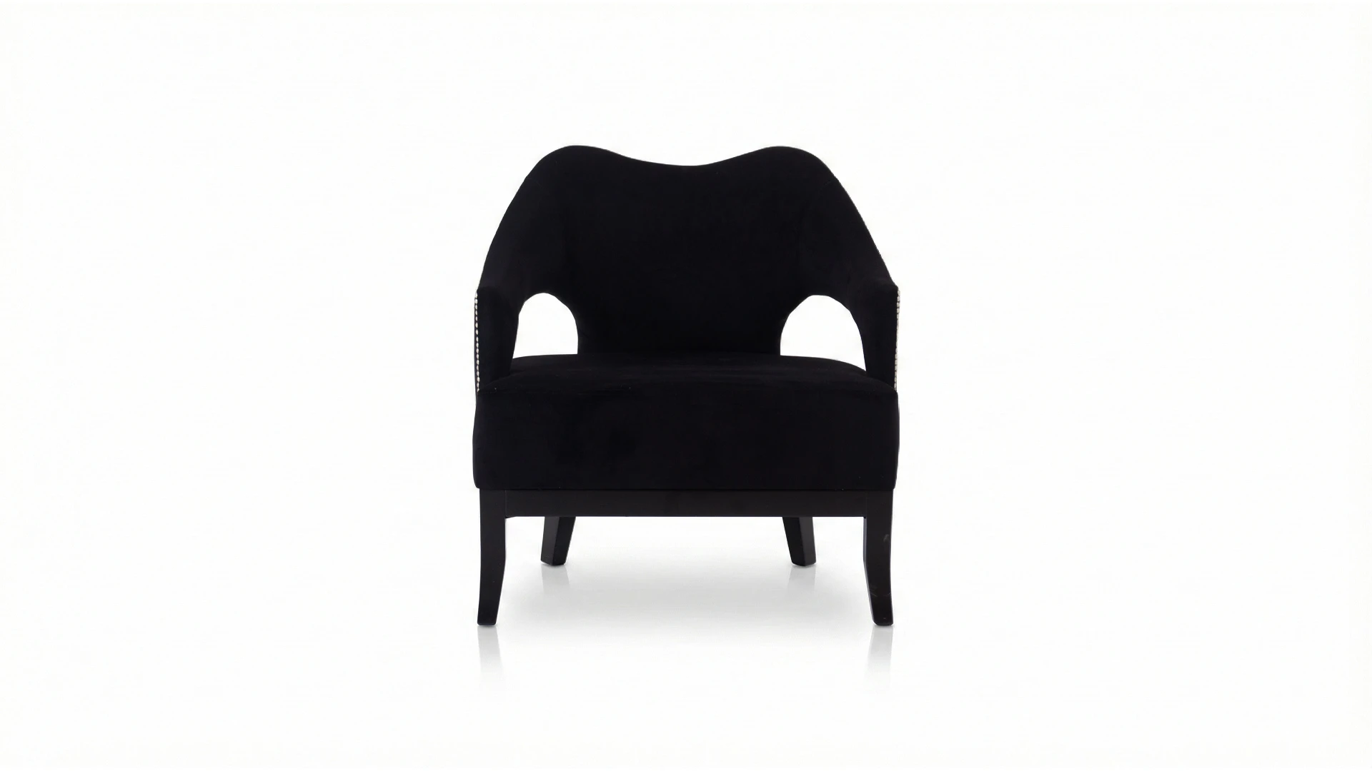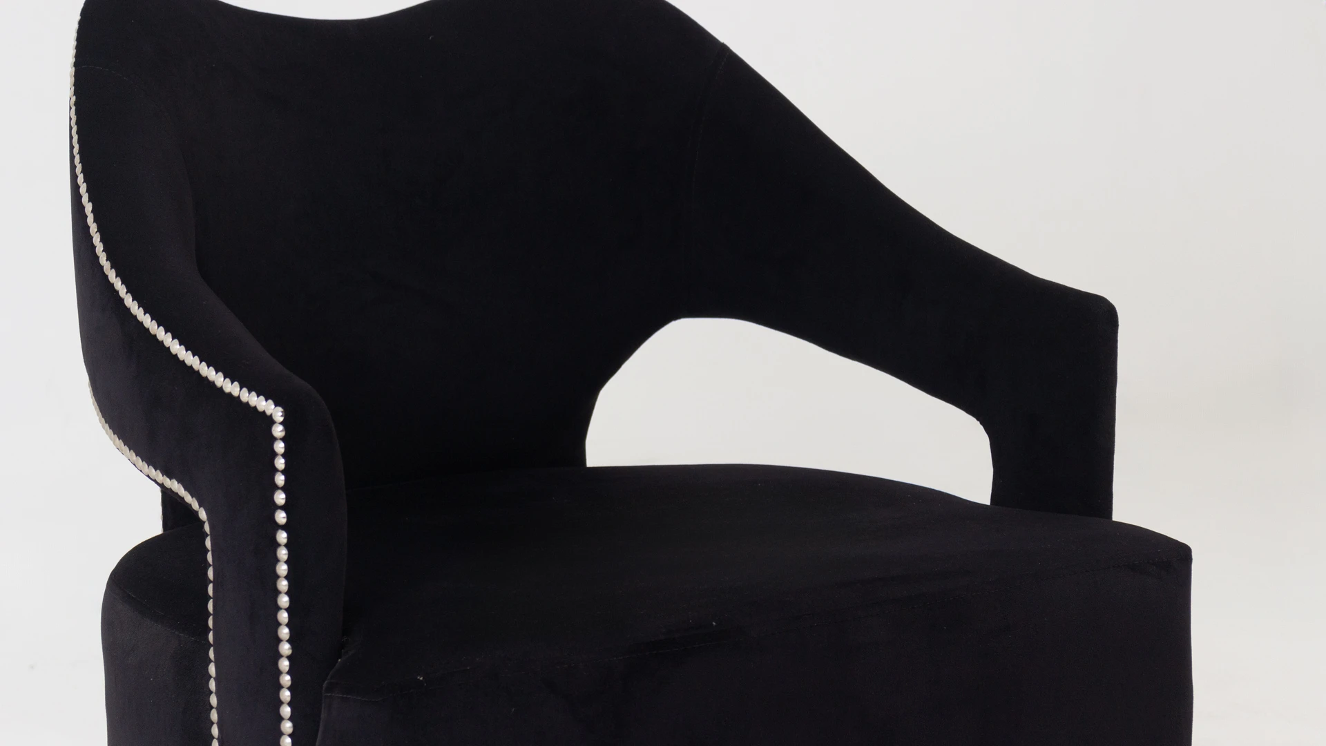 Sillón de sala Kiss. Tapizado de pana liso, caracterizado por su forma curvilínea, con detalles en tachas. Estructura fabricada con madera de Guindo y terminada con piluretánico negro semimate. Producto de edición limitada. Consultar stock disponible. Precio final con descuento, incluye IVA y género. Para customizaciones que requieran un nuevo proceso de fabricación, se realizará una cotización especial