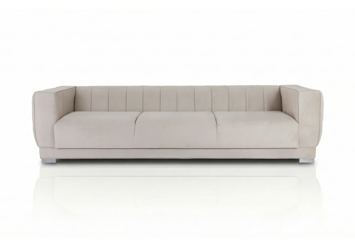 Sofá de líneas contemporáneas con estructura interna de madera maciza reforzada, que garantiza solidez y estabilidad estructural. Tapizado íntegramente en tela pana porsche Vainilla, de tacto suave y acabado uniforme, que aporta calidez visual y confort. Base inferior integrada con apoyos metálicos de terminación moderna. Producto de edición limitada. Consultar stock disponible. Precio final con descuento, incluye IVA y género. Para customizaciones que requieran un nuevo proceso de fabricación, se realizará una cotización especial.