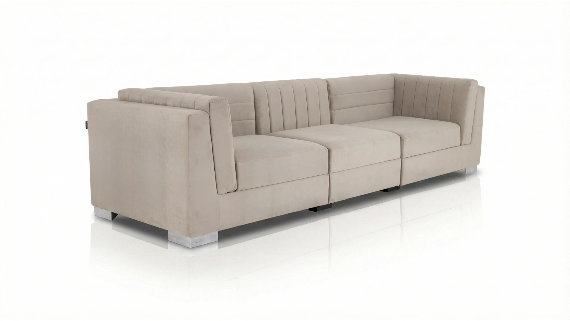 Sofá de líneas contemporáneas con estructura interna de madera maciza reforzada, que garantiza solidez y estabilidad estructural. Tapizado íntegramente en tela pana porsche Latte, de tacto suave y acabado uniforme, que aporta calidez visual y confort. Base inferior integrada con apoyos metálicos de terminación moderna. Producto de edición limitada. Consultar stock disponible. Precio final con descuento, incluye IVA y género. Para customizaciones que requieran un nuevo proceso de fabricación, se realizará una cotización especial.